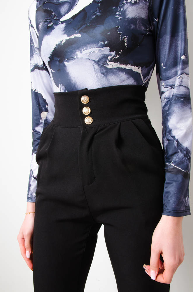 SPODNIE MATERIAŁOWE ZE ZŁOTYMI GUZIKAMI- CZARNE