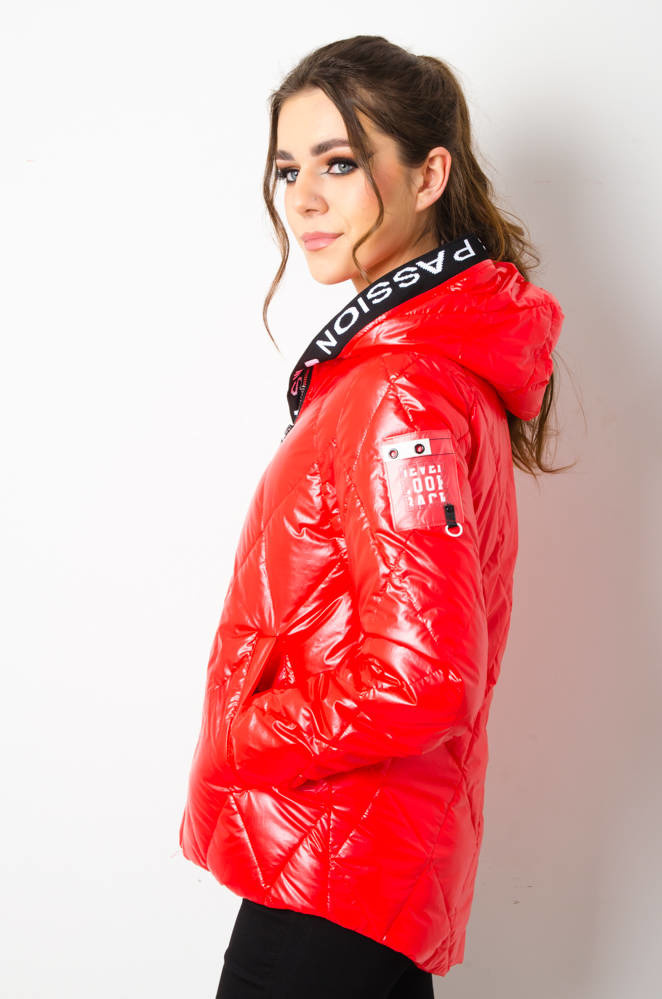 KURTKA WIOSENNA PIKOWANA Z KAPTUREM - CZERWONA