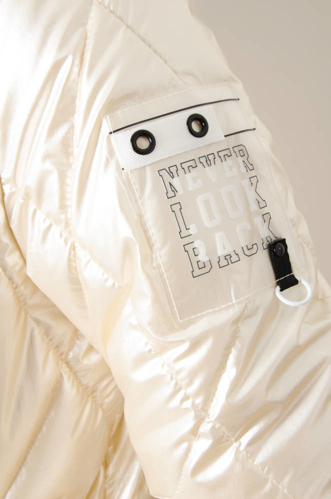 KURTKA PRZEJŚCIOWA PIKOWANA Z KAPTUREM - EKRI