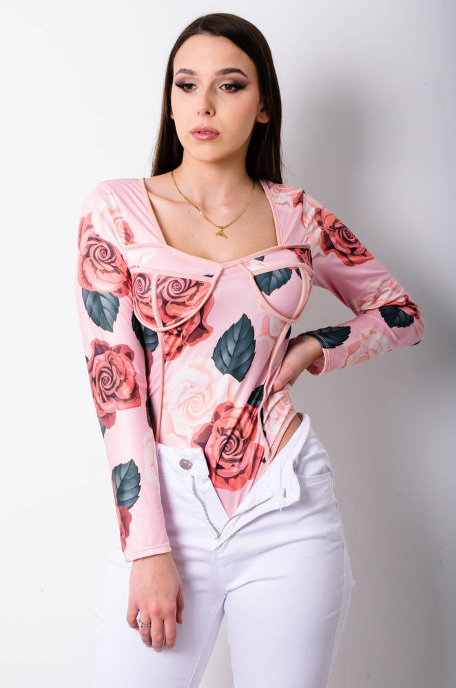 BODY W KWIATY W KOLORZE RÓŻOWYM