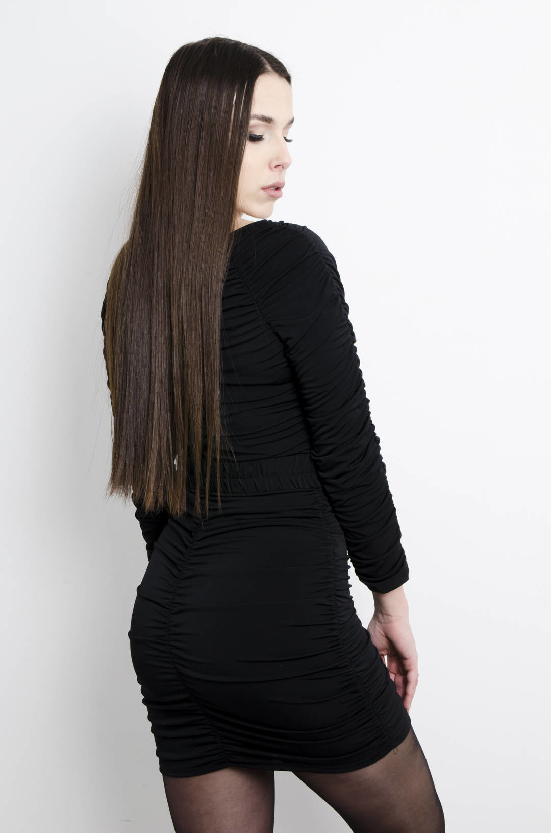 SUKIENKA MARSZCZONA Z PASKIEM- CZARNA
