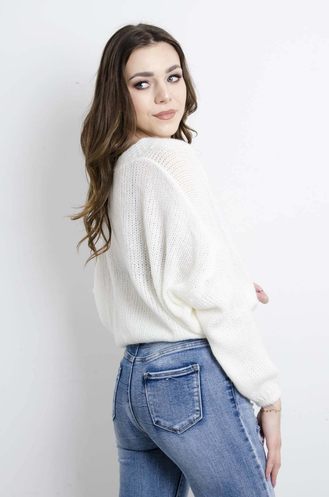 SWETER KARDIGAN ZAPINANY NA GUZIKI- BIAŁY