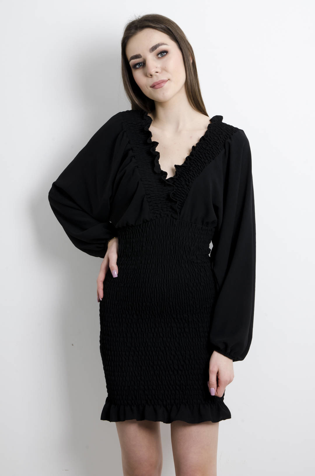 SUKIENKA CZARNA Z MARSZCZONYM DOŁEM