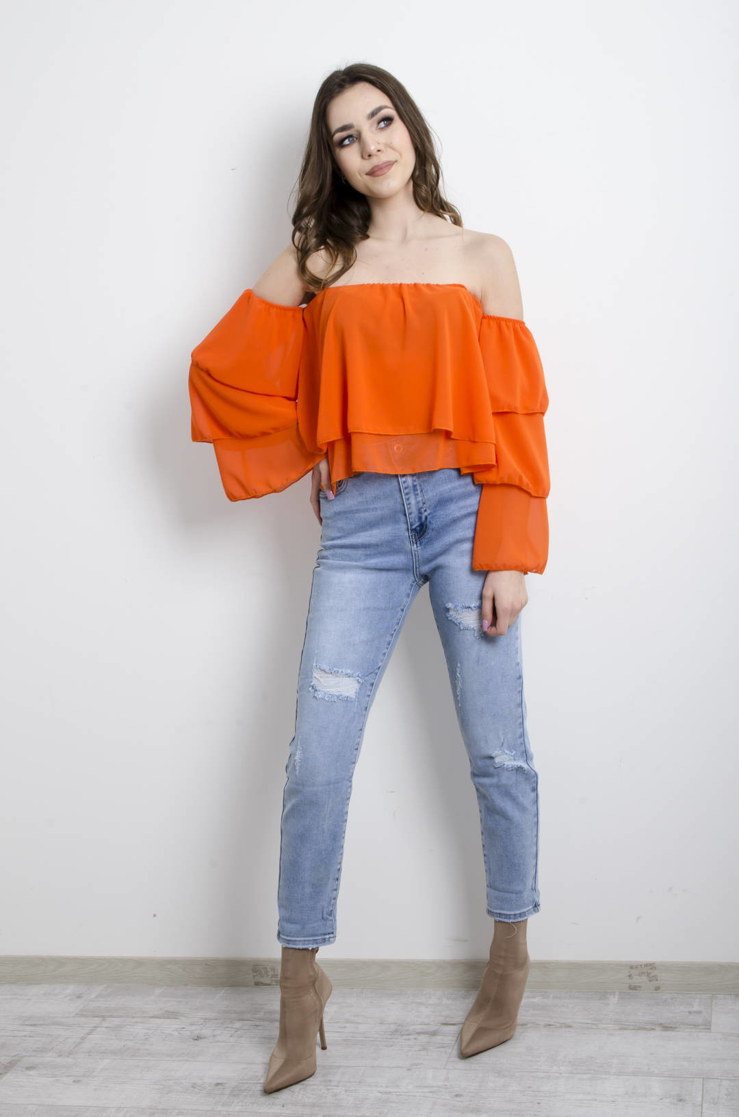 BLUZKA HISZPANKA NA DŁUGI RĘKAW - POMARAŃCZOWA
