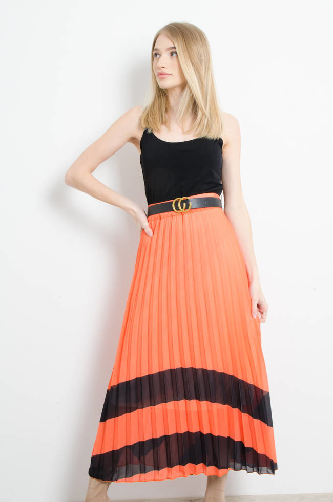 SPÓDNICA PLISOWANA Z PASKIEM - POMARAŃCZOWA