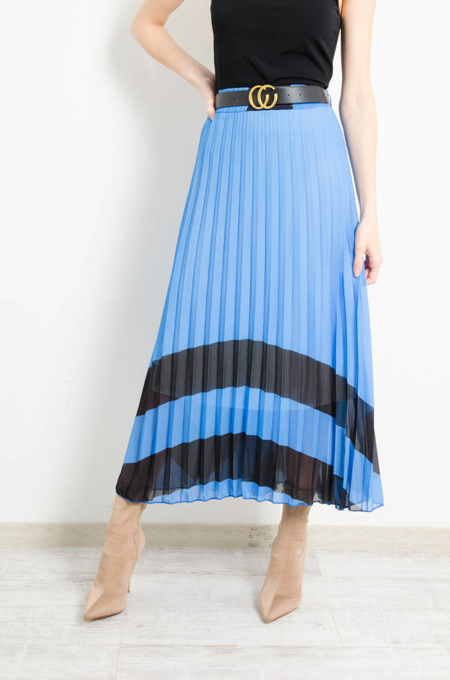 SPÓDNICA PLISOWANA Z PASKIEM - GRANATOWA