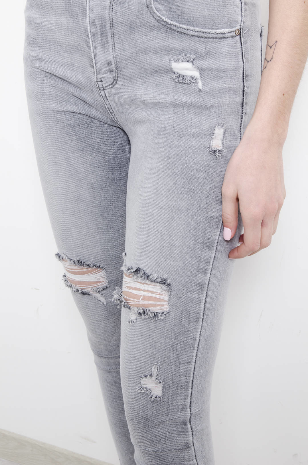 SPODNIE SZARE JEANSOWE Z WYSOKIM STANEM