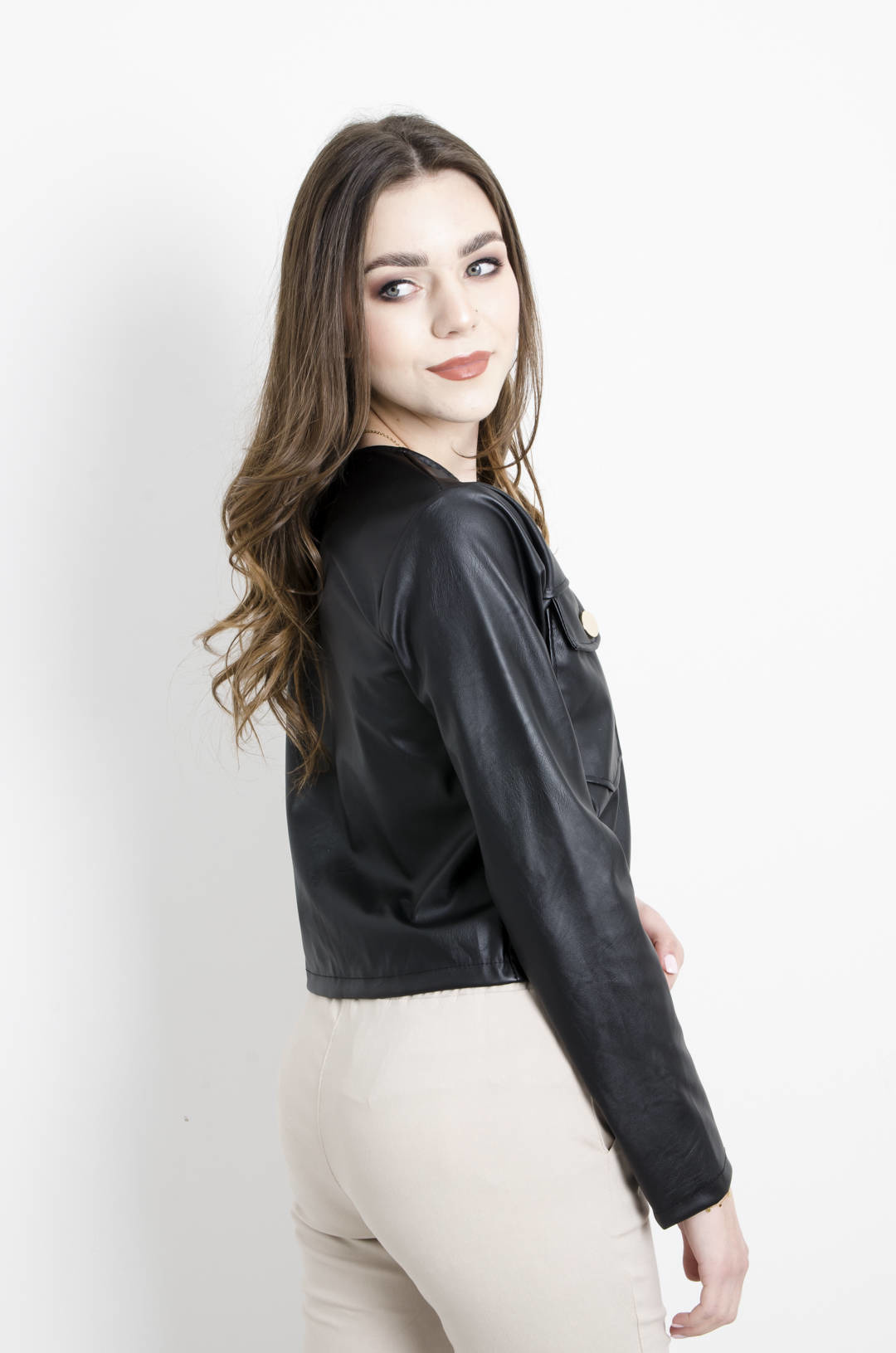 ŻAKIET Z IMITACJI SKÓRY W KOLRZE CZARNYM
