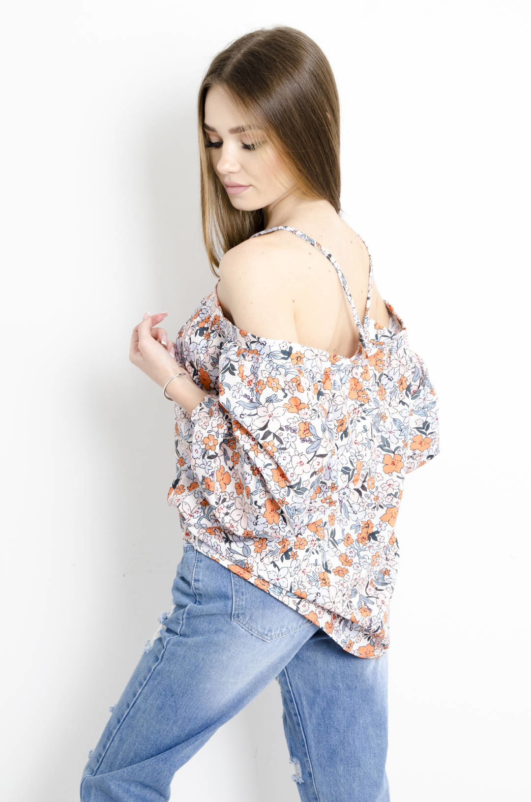BLUZKA HISZPANKA W KWIATY- EKRI