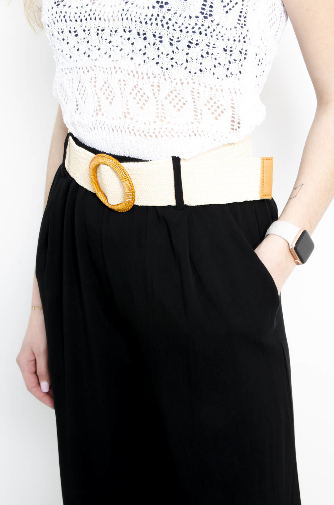 SPODNIE MATERIAŁOWE Z PLECIONYM PASKIEM- CZARNE