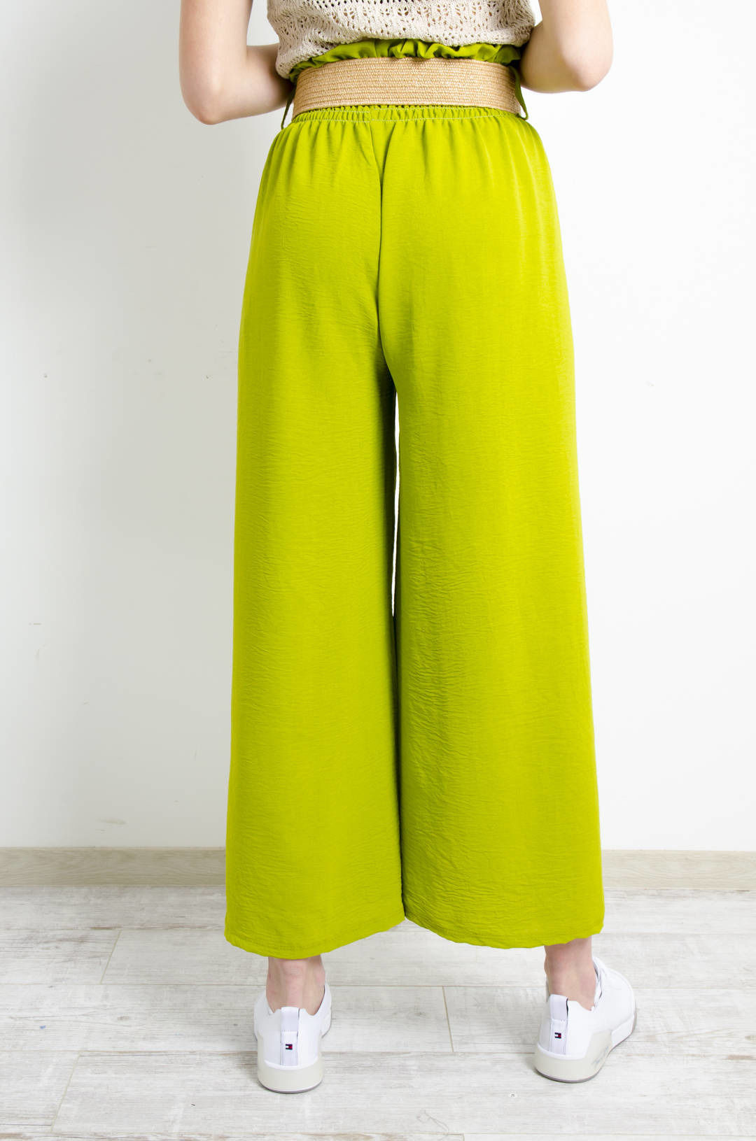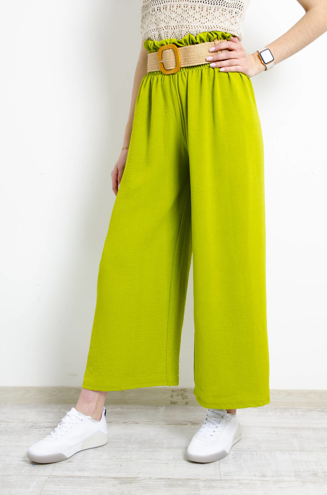 SPODNIE MATERIAŁOWE Z MARSZCZONĄ GUMĄ W PASIE I PLECIONYM PASKIEM- ZIELONE