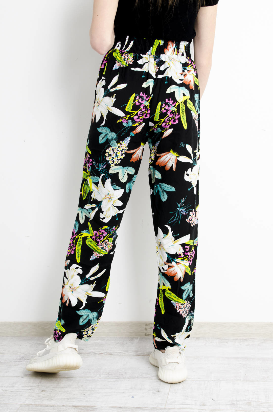 CZARNE ALLADYNKI W KWIATY Z WYSOKIM STANEM