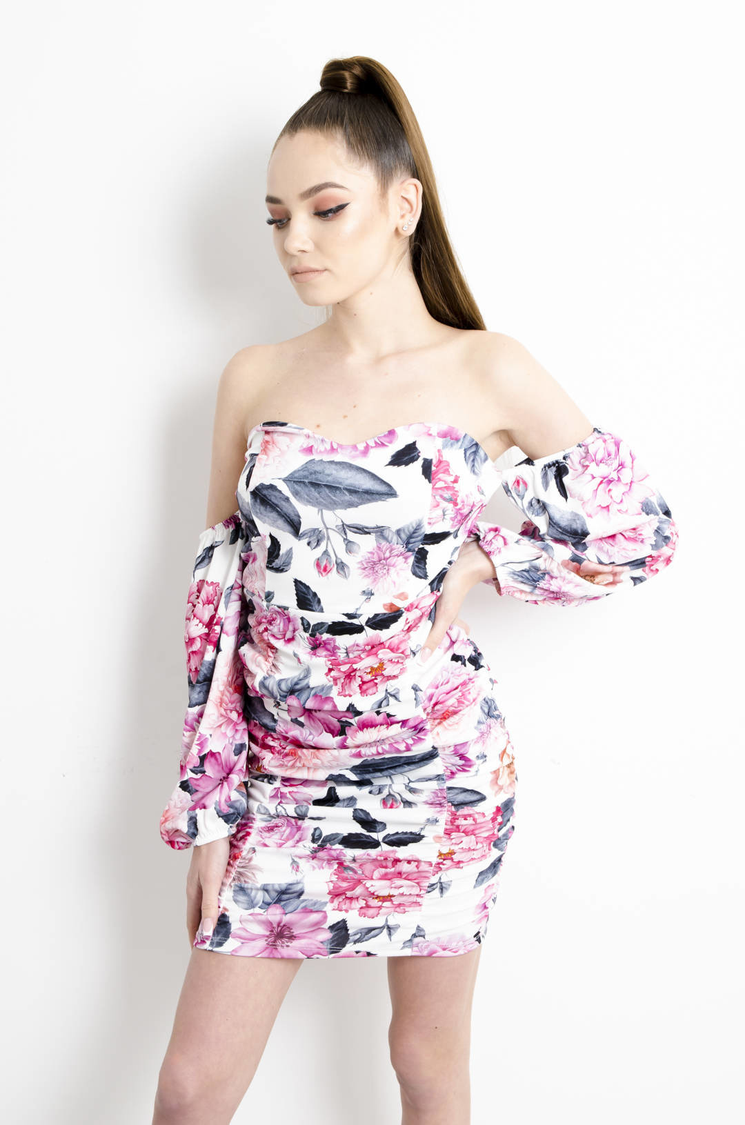 SUKIENKA HISZPANKA Z MARSZCZENIEM W KWIATOWY WZÓR