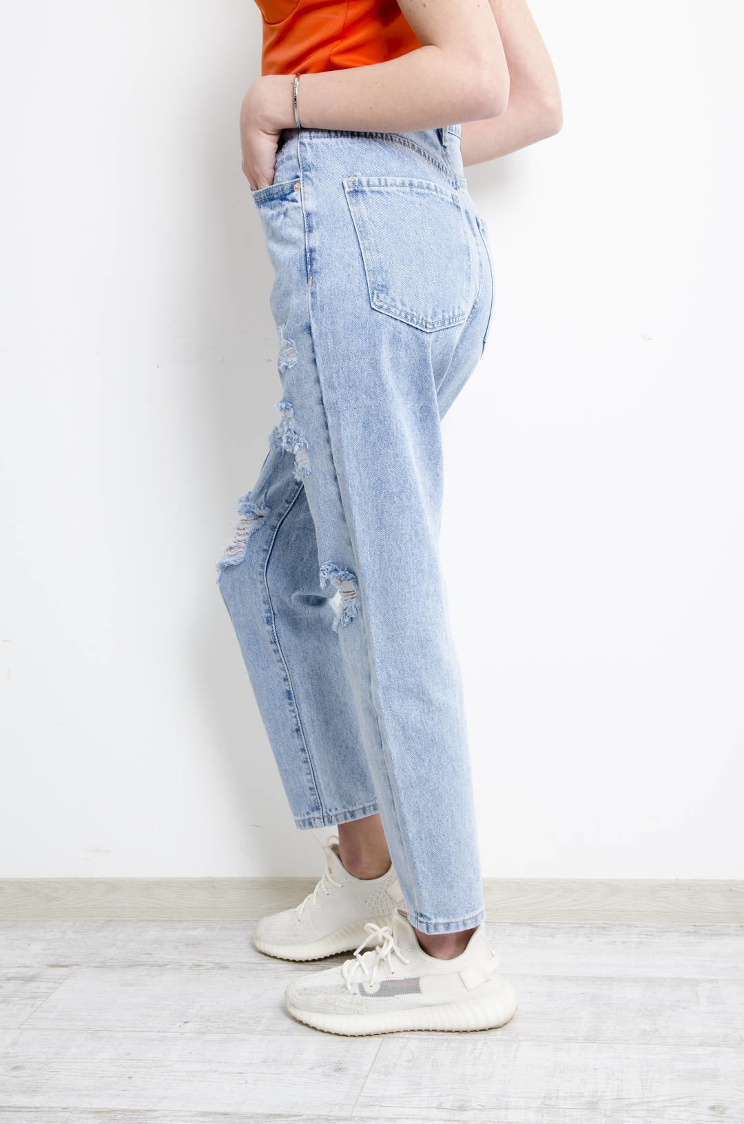 SPODNIE JEANSOWE MOM FIT Z DZIURAMI