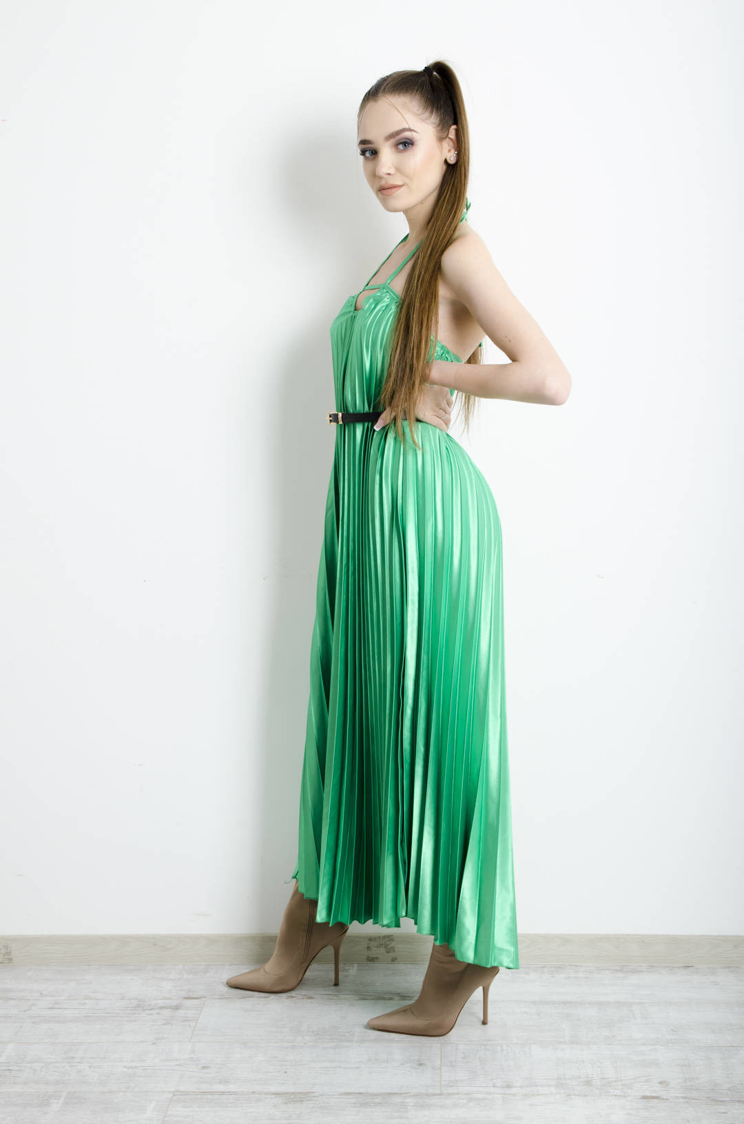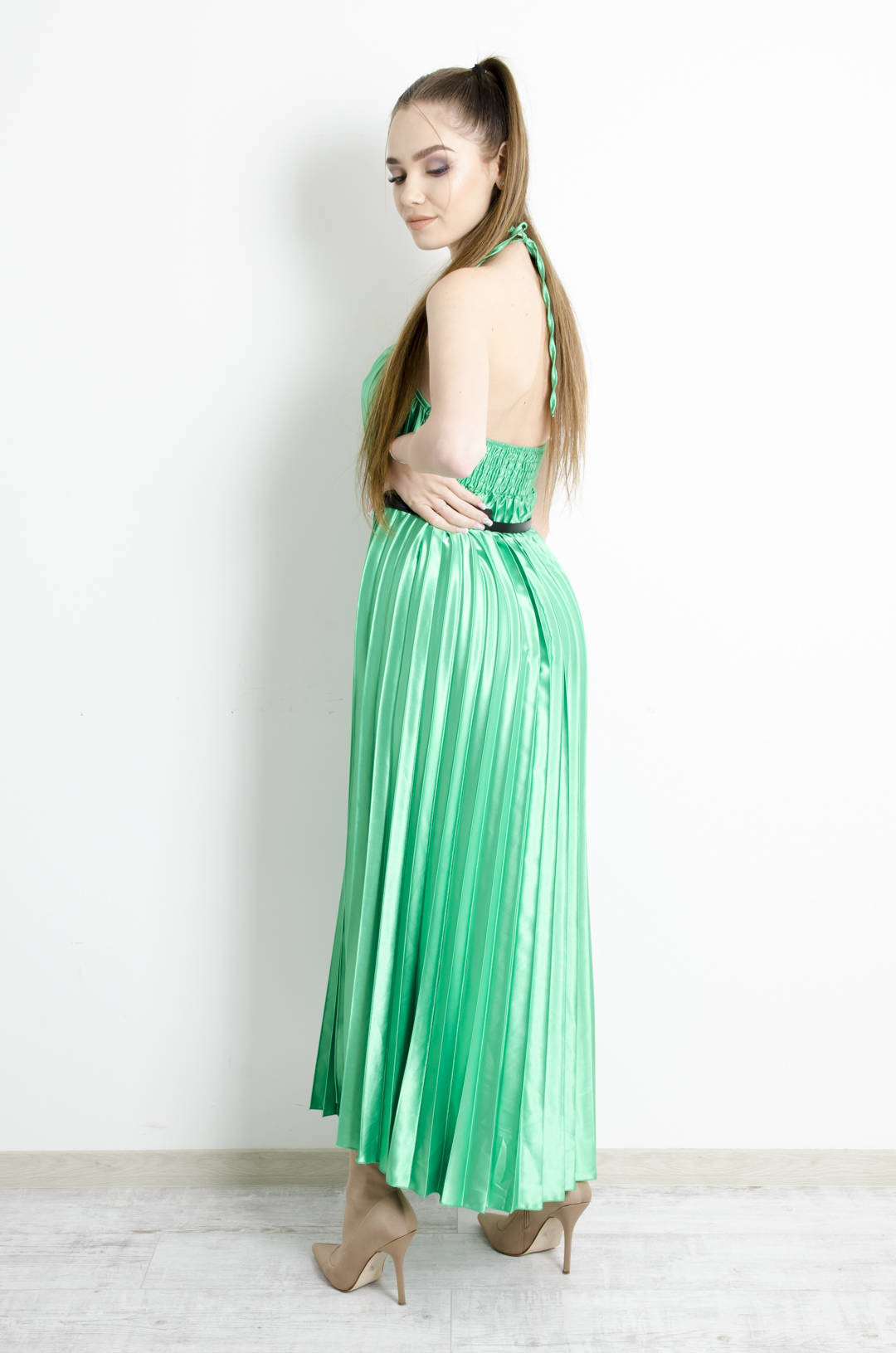 SUKIENKA ZIELONA PLISOWANA Z PASKIEM