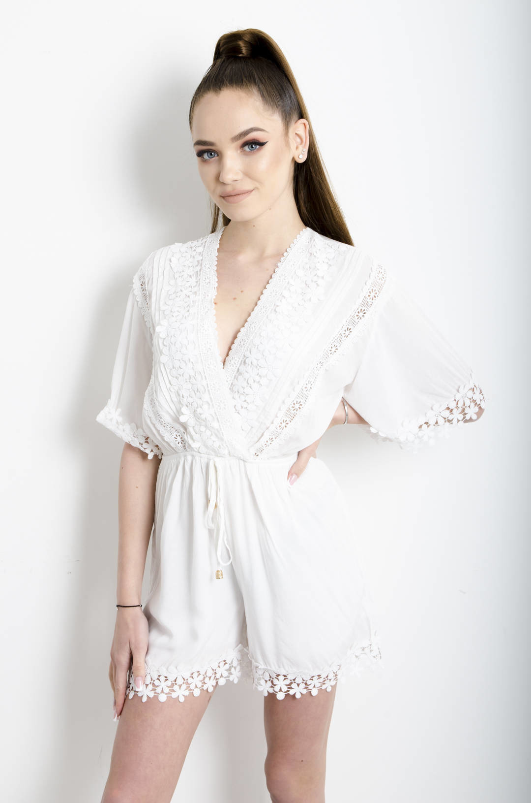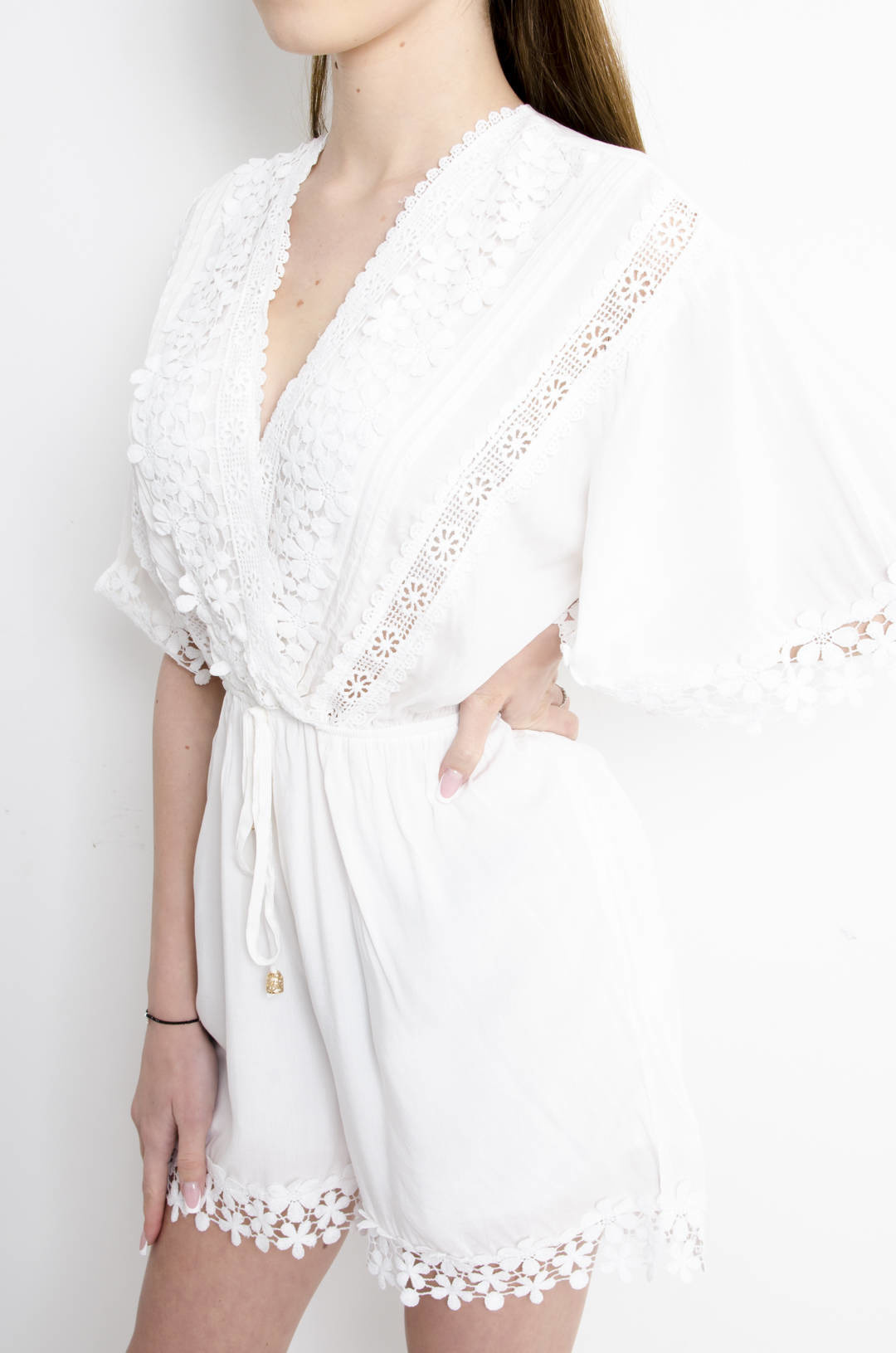 KOMBINEZON AŻUROWY W KOLORZE BIAŁYM