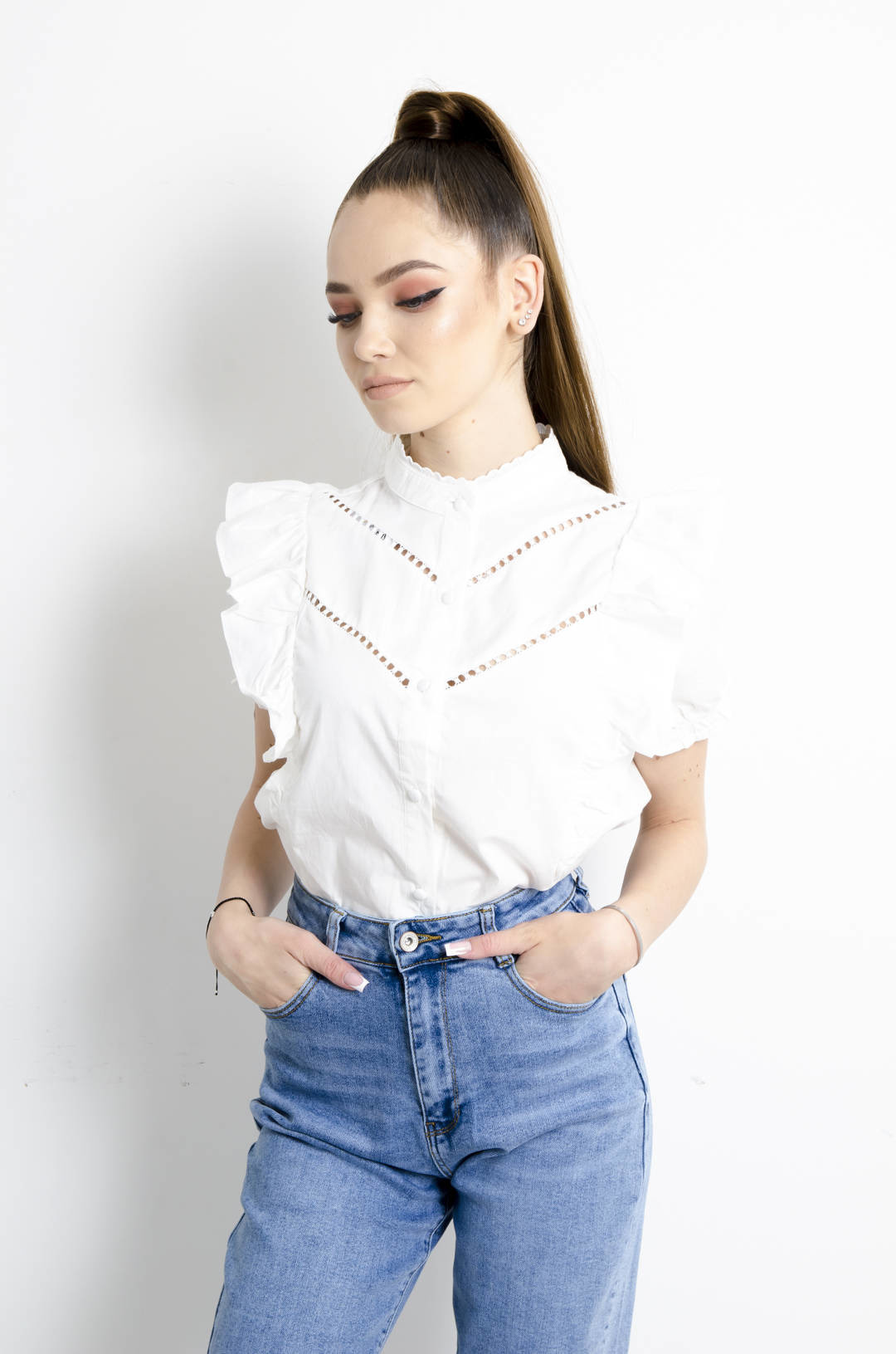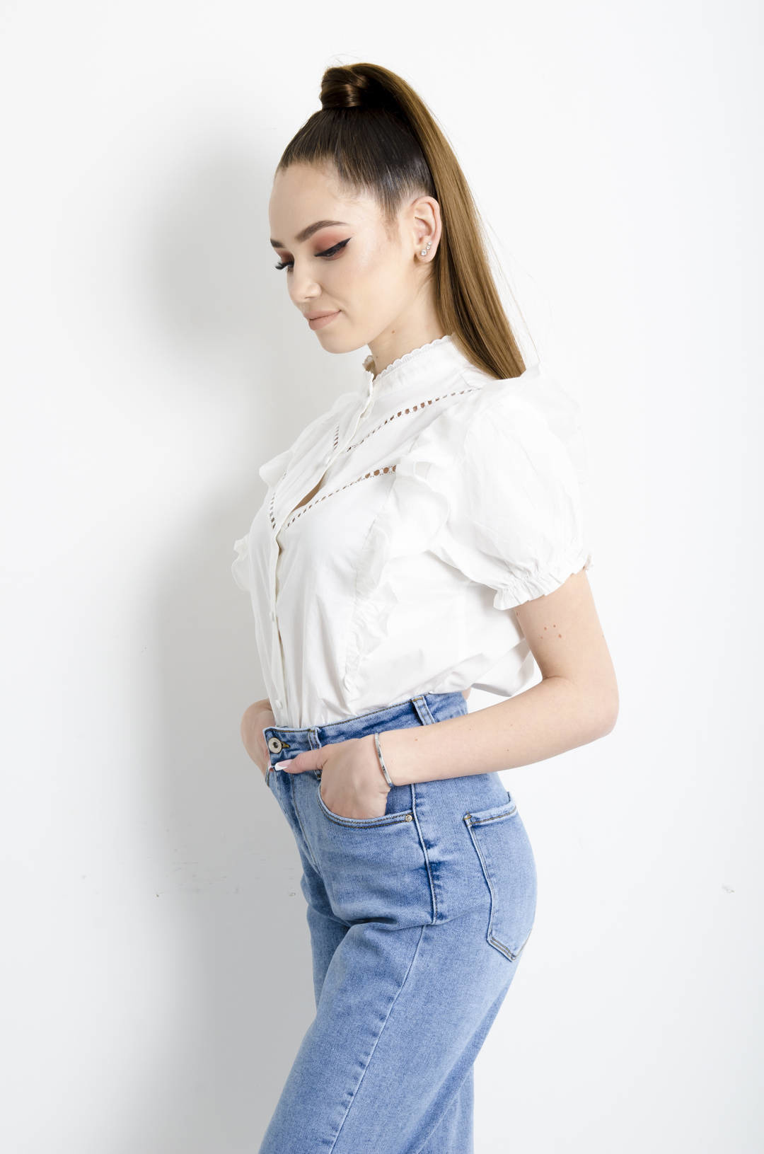 BLUZKA KOSZULOWA Z BUFIASTYMI RĘKAWAMI