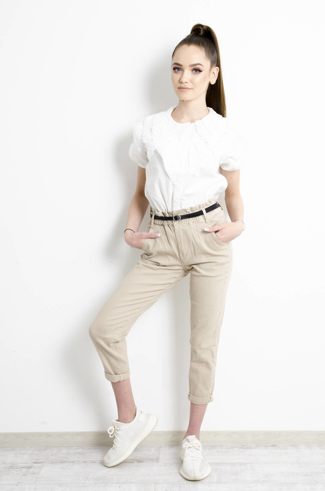 SPODNIE BEŻOWE MOM FIT MARSZCZONE W PASIE