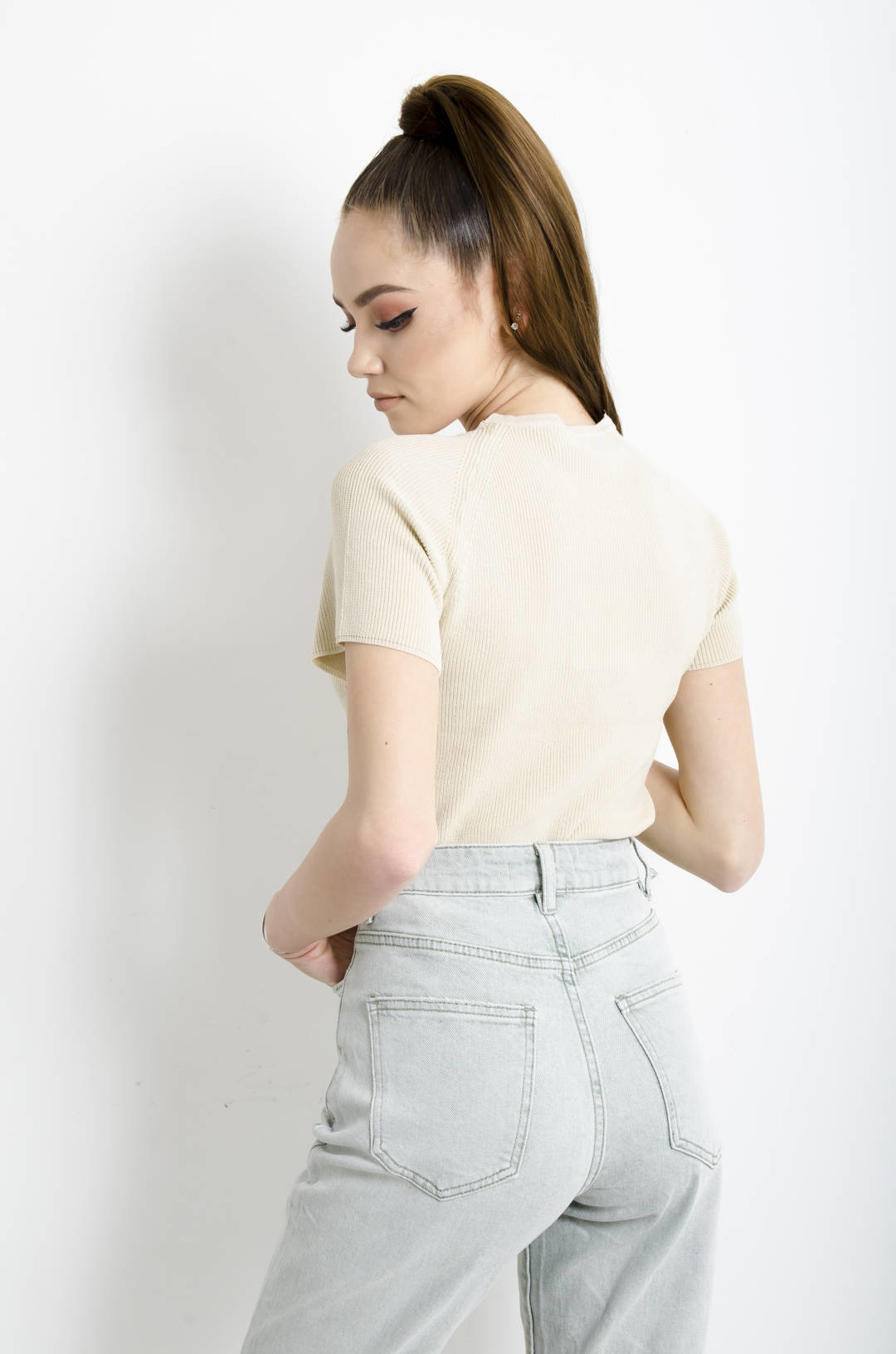 T-SHIRT SWETERKOWY W KOLORZE BEŻOWYM