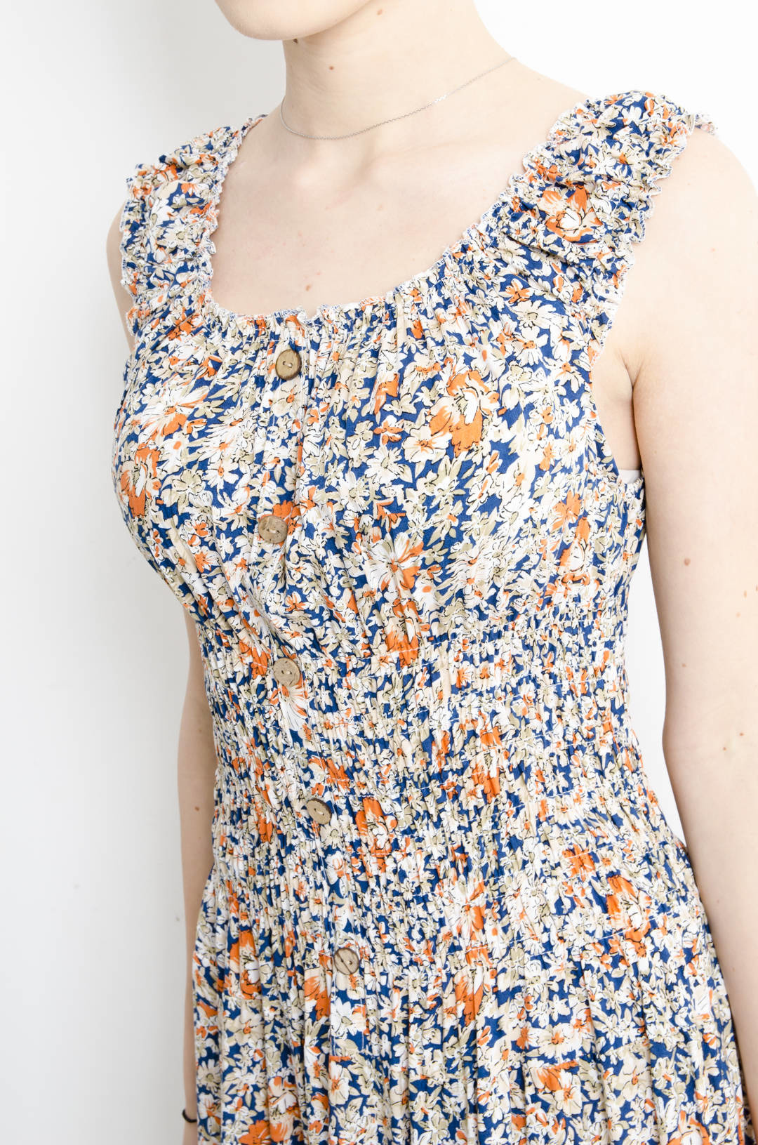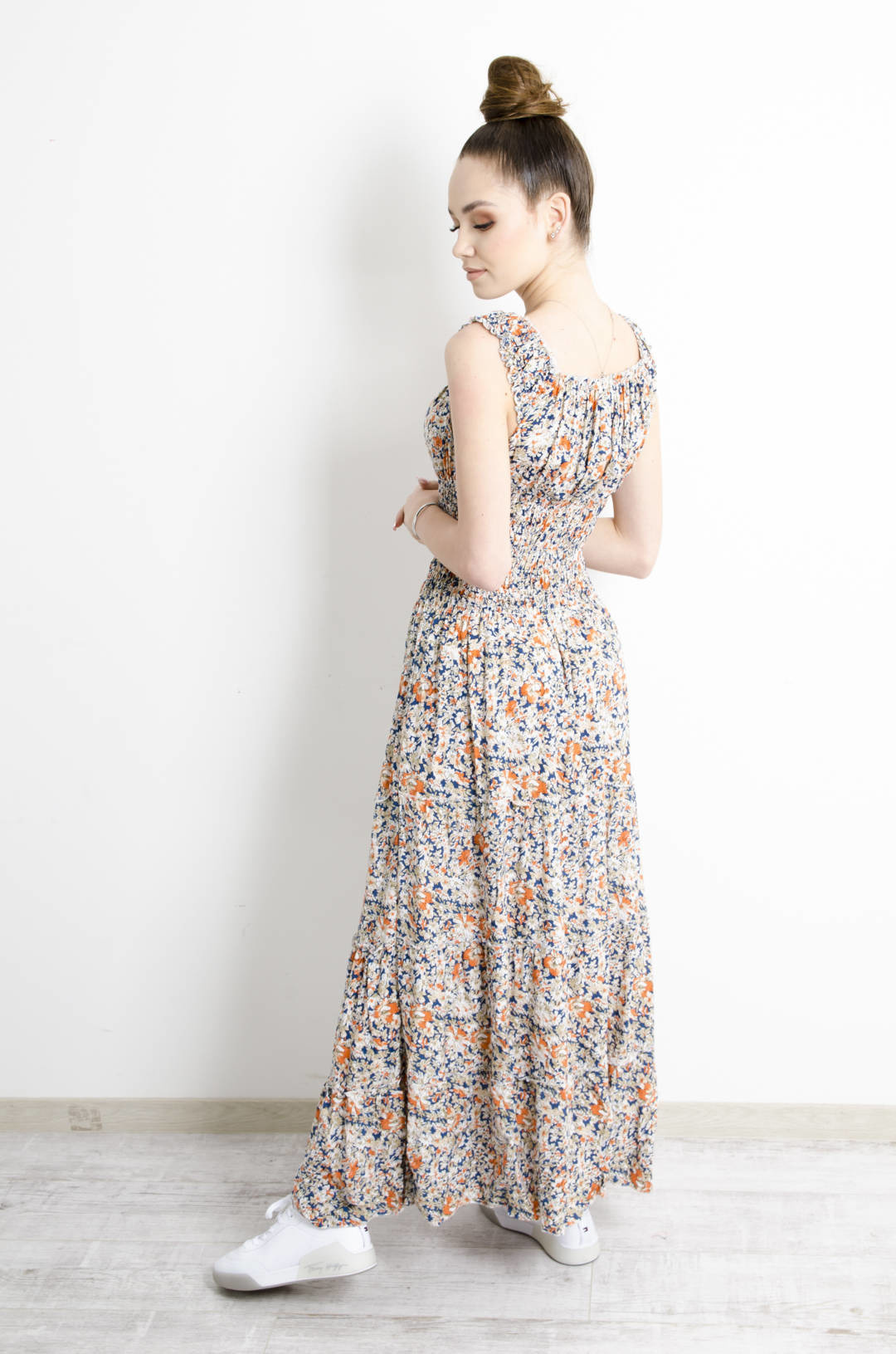 SUKIENKA MAXI W KWIATY Z GUMĄ W PASIE - POMARAŃCZOWA