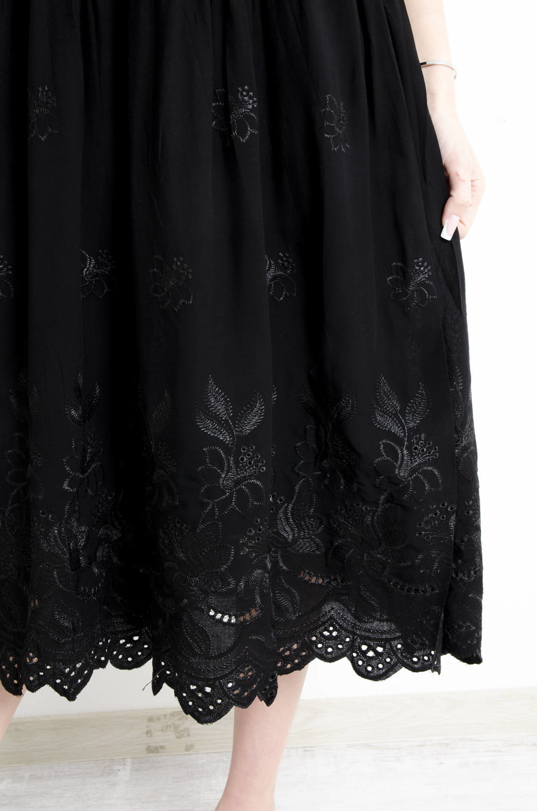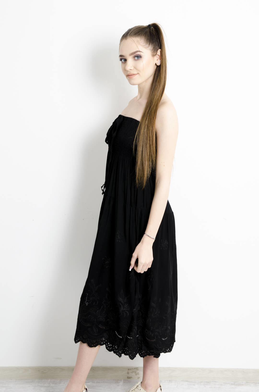 SUKIENKA MIDI Z WIĄZANIEM NA SZYJĘ - CZARNA