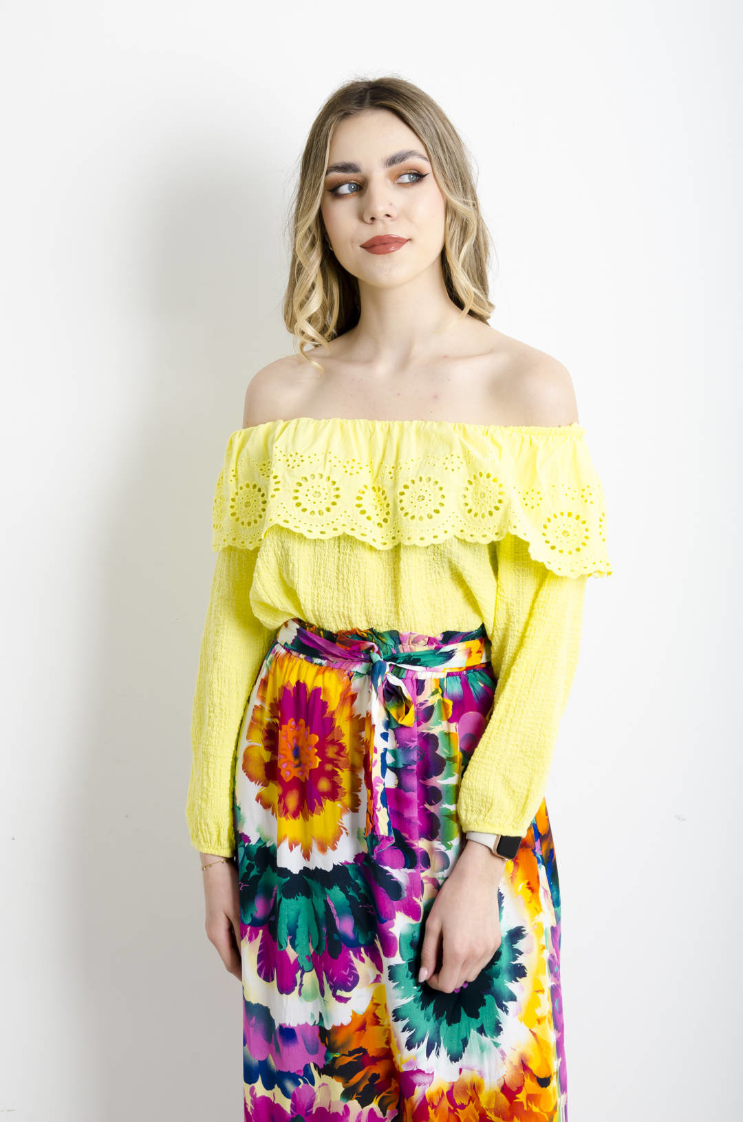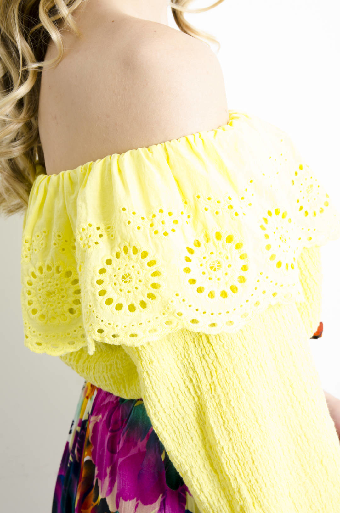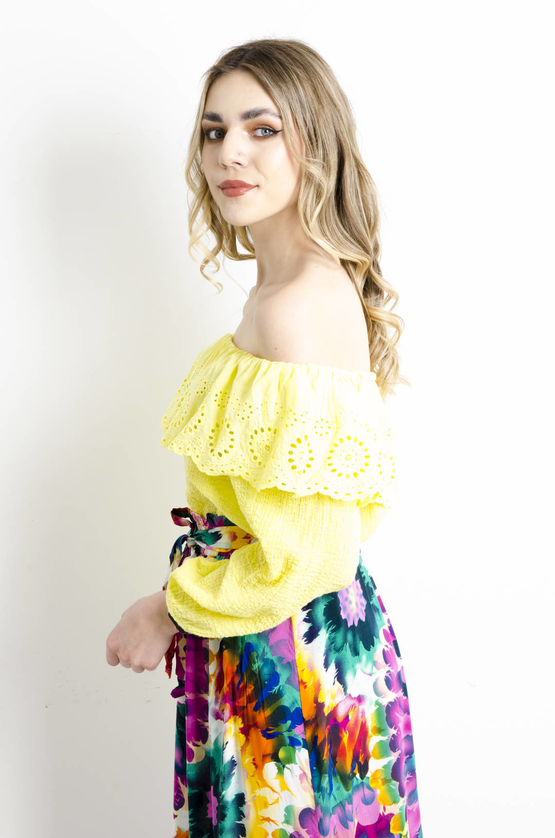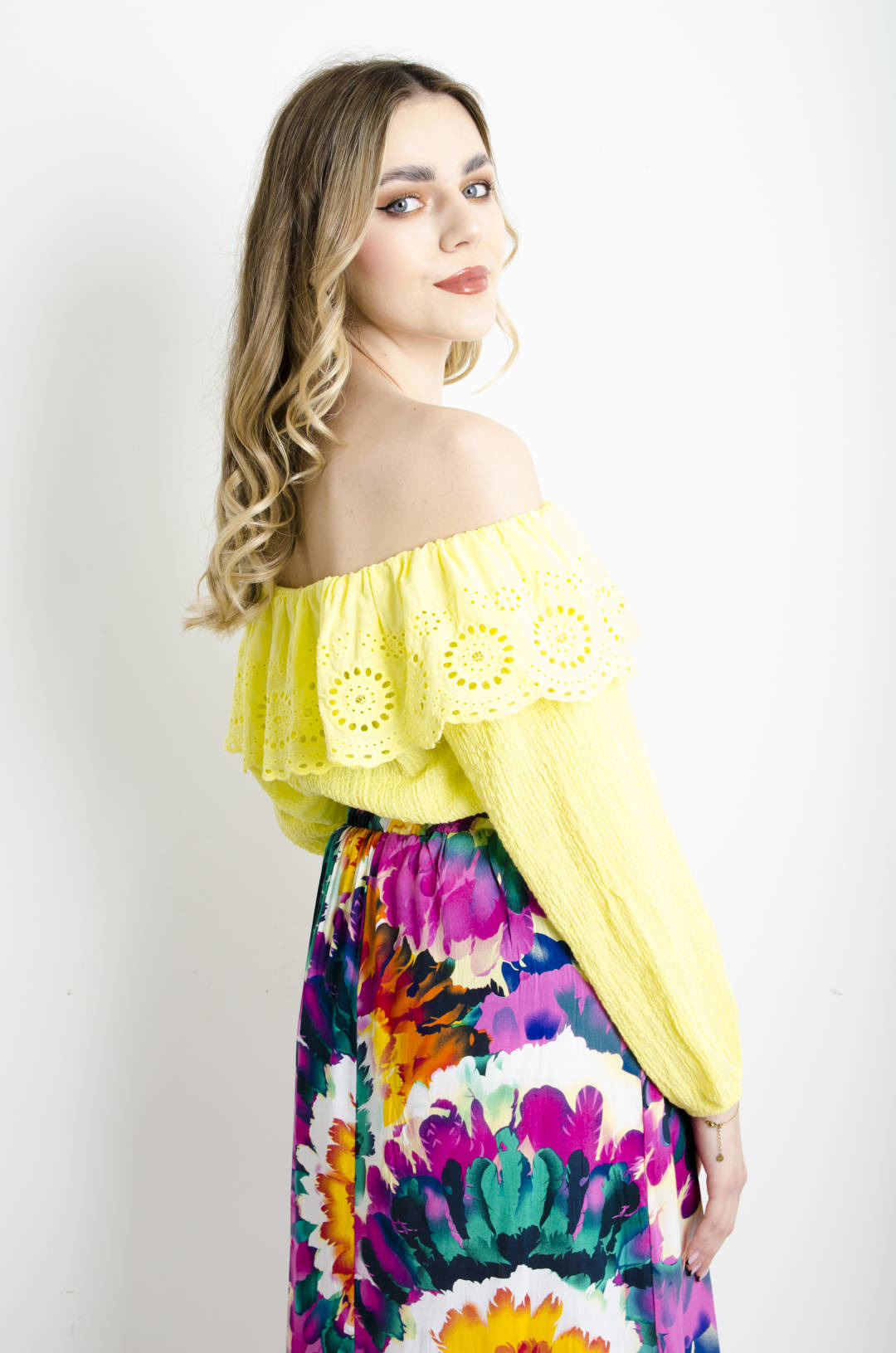 BLUZKA HISZPANKA Z KORONKĄ - ŻÓŁTA