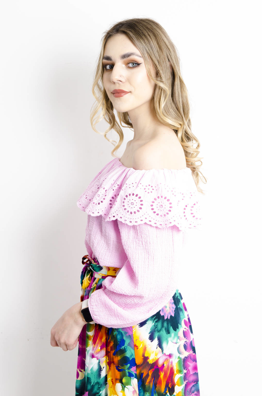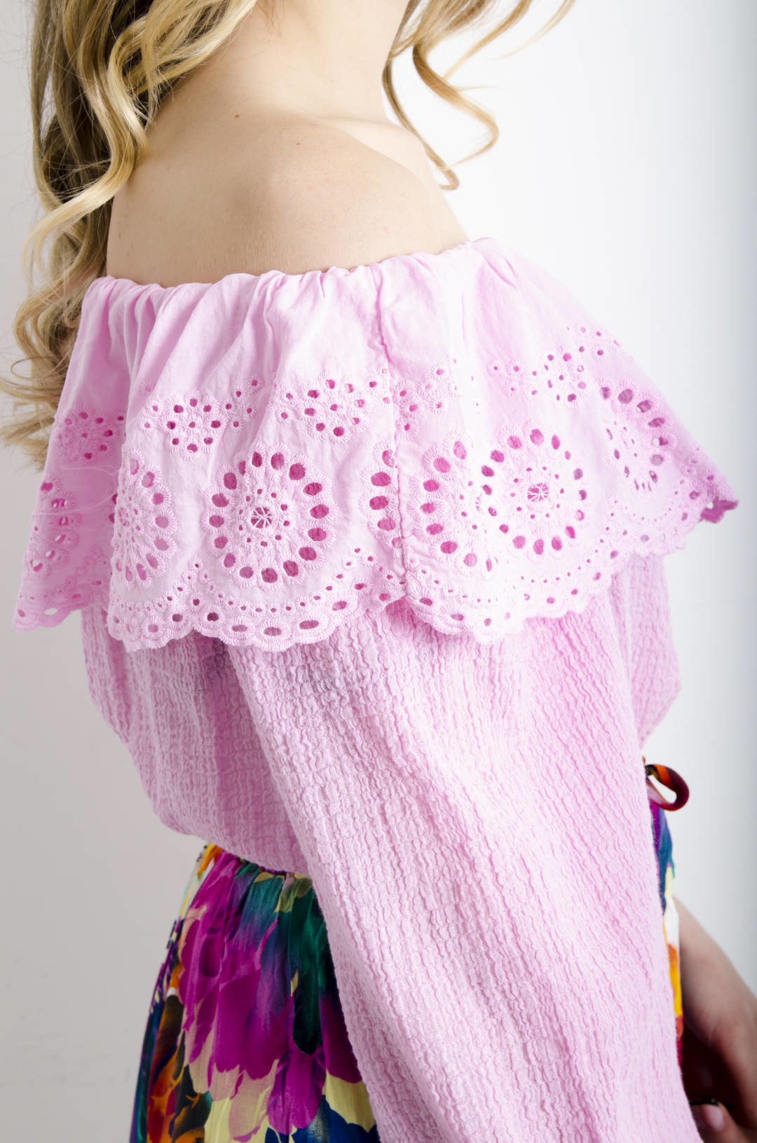 BLUZKA HISZPANKA Z KORONKĄ - RÓŻOWA