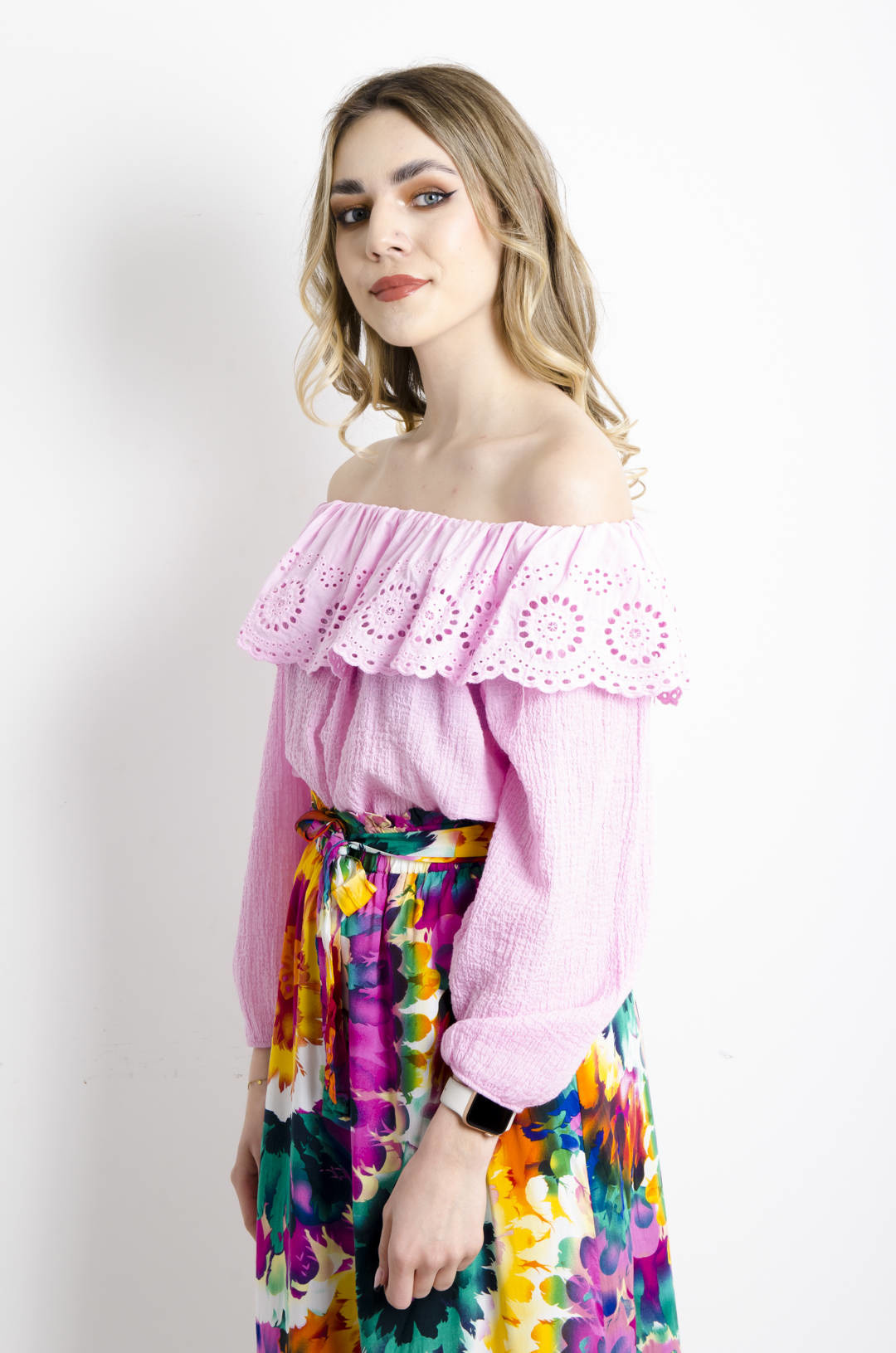 BLUZKA HISZPANKA Z KORONKĄ -RÓŻOWA