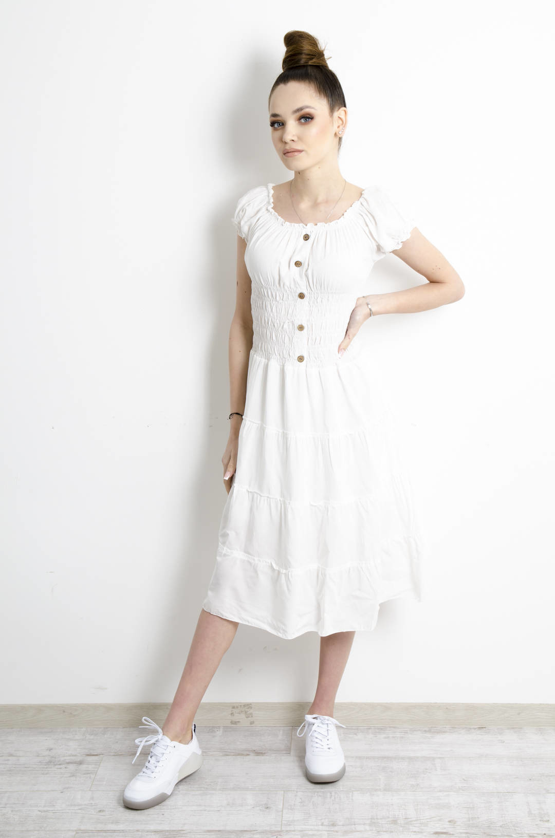 SUKIENKA HISZPANKA MIDI Z GUMĄ W PASIE- BIAŁA