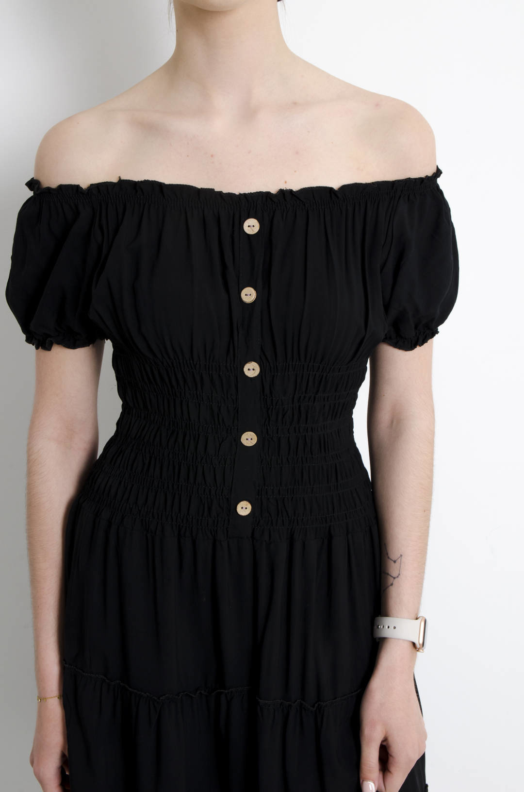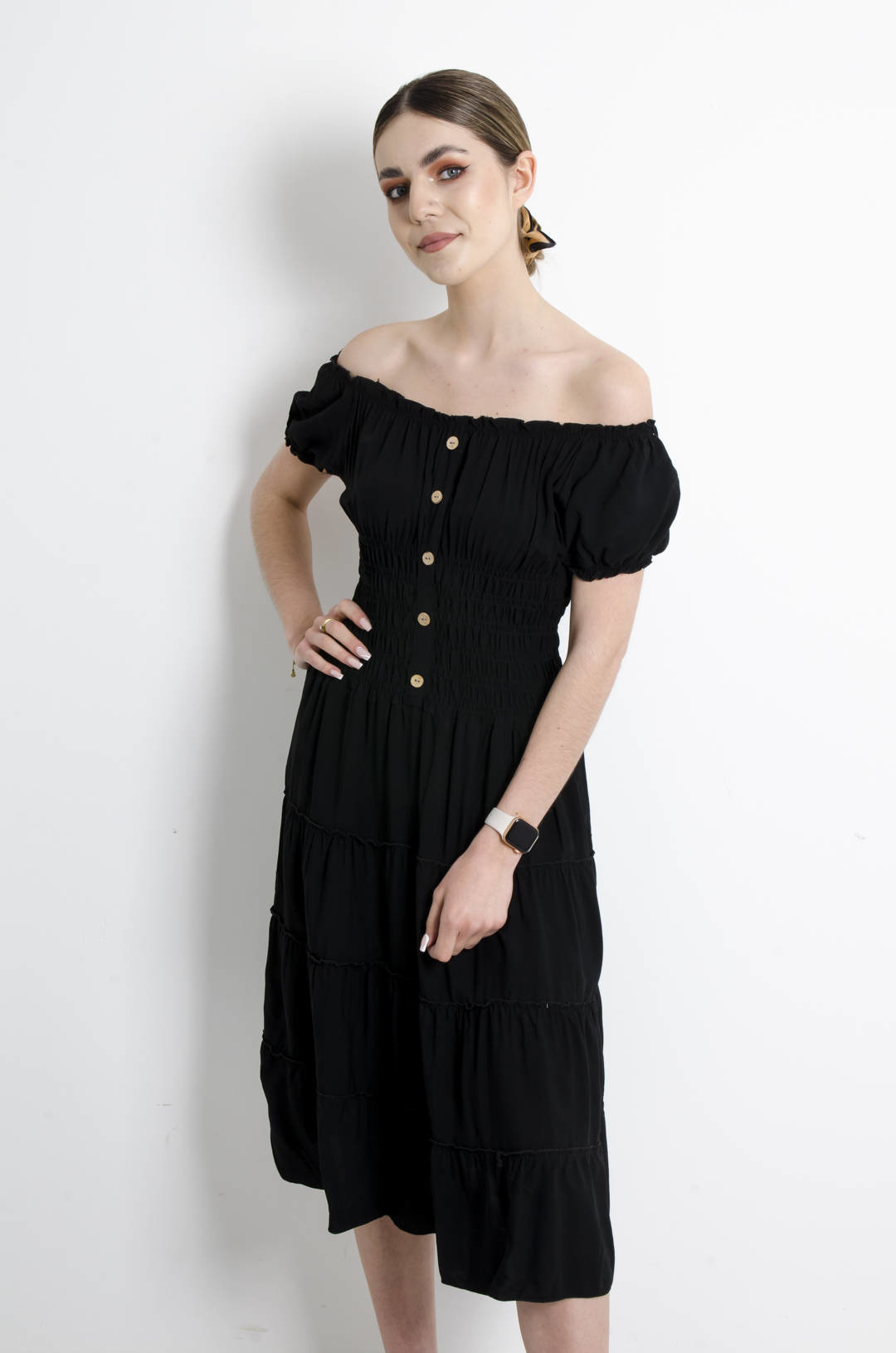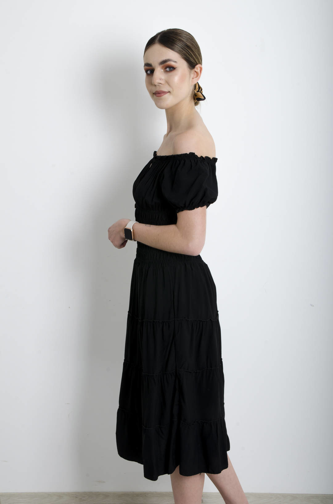 SUKIENKA HISZPANKA MIDI Z GUMĄ W PASIE- CZARNA