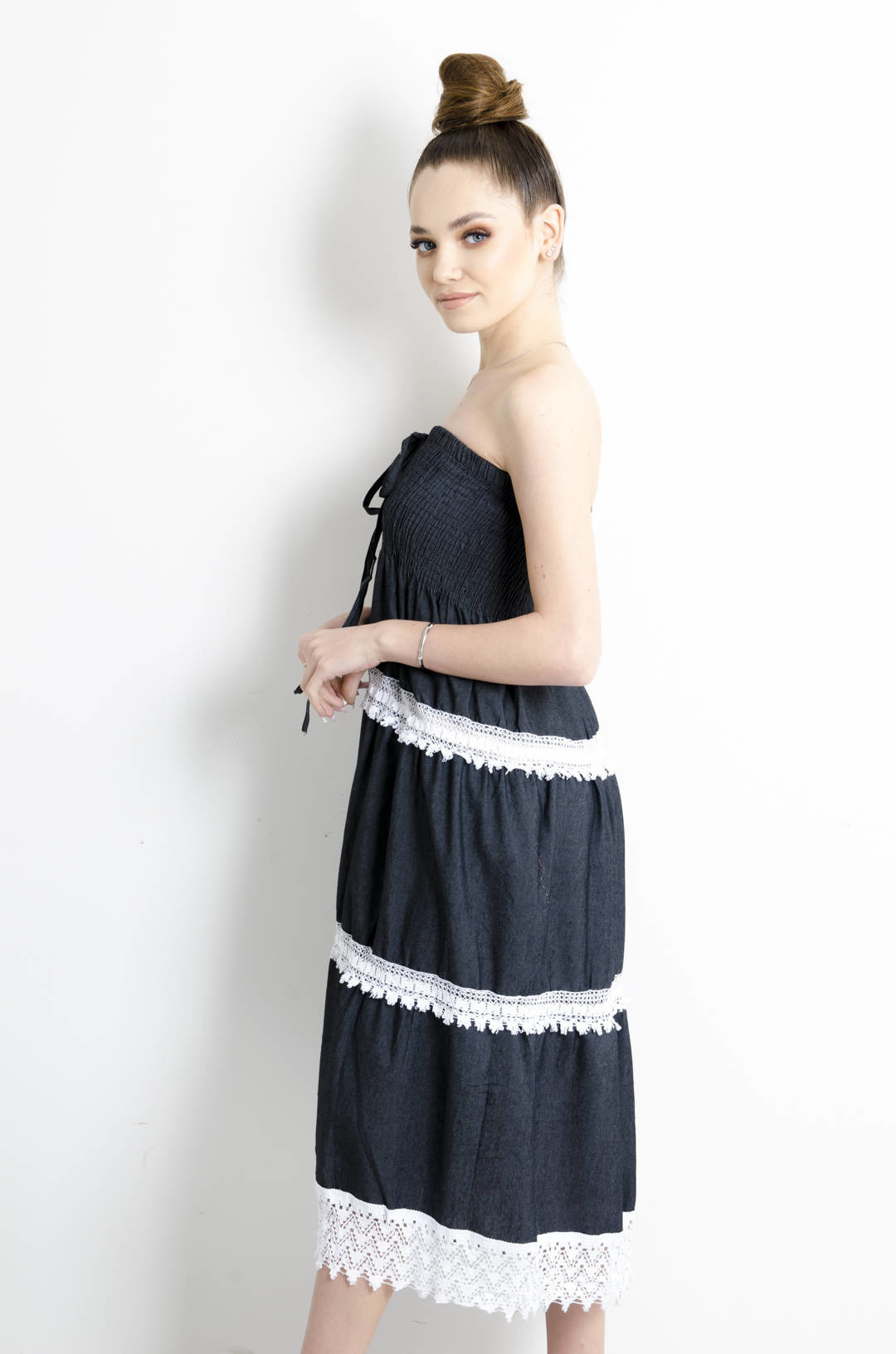 SUKIENKA Z KORONKĄ I WIĄZANIEM- SZARA