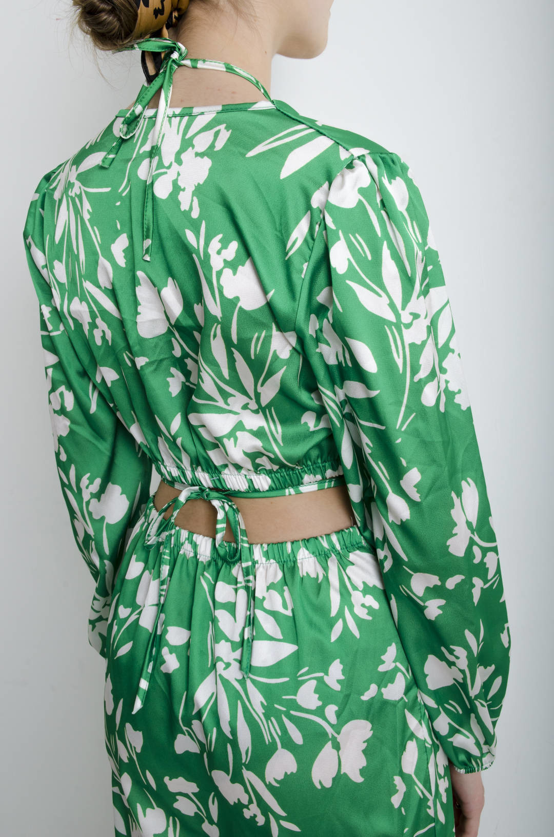 SUKIENKA ZIELONA W KWIATY Z WYCIĘCIEM