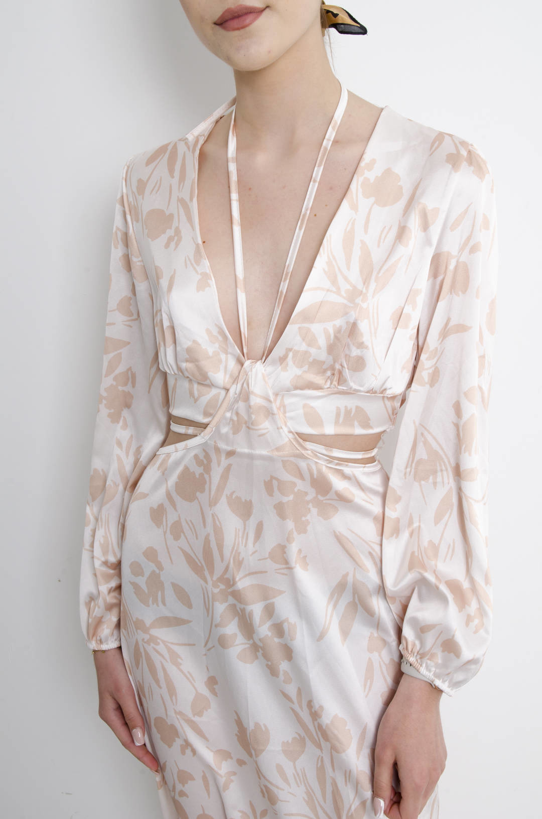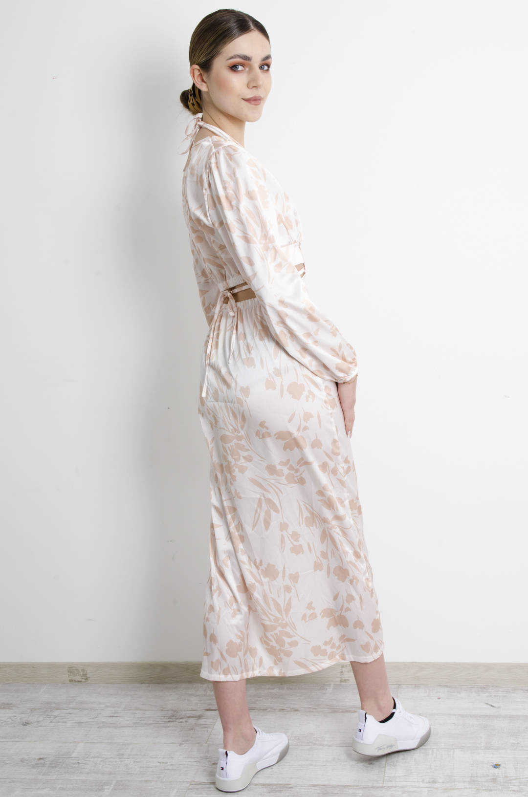 SUKIENKA BIAŁA W KWIATY Z WYCIĘCIEM