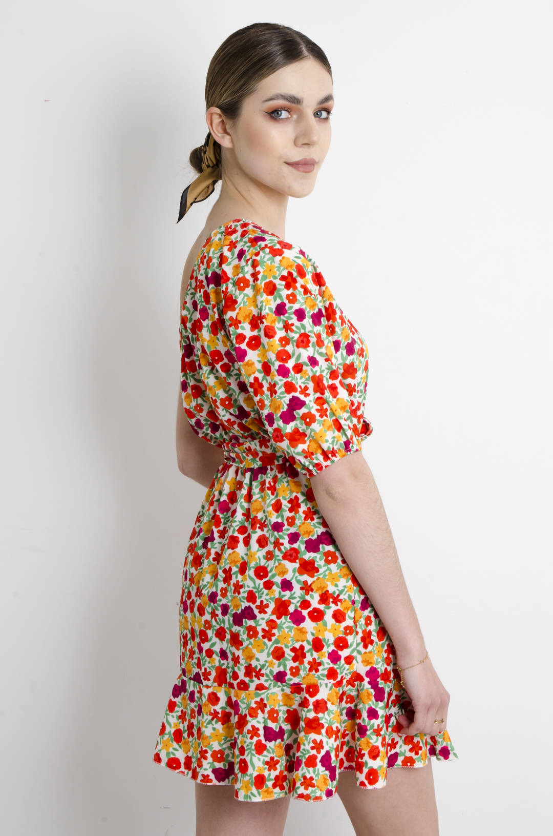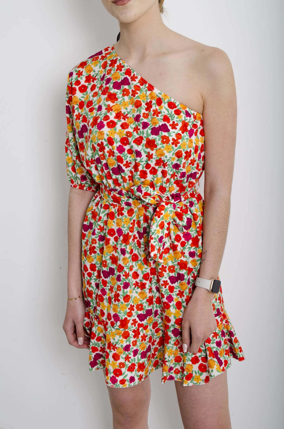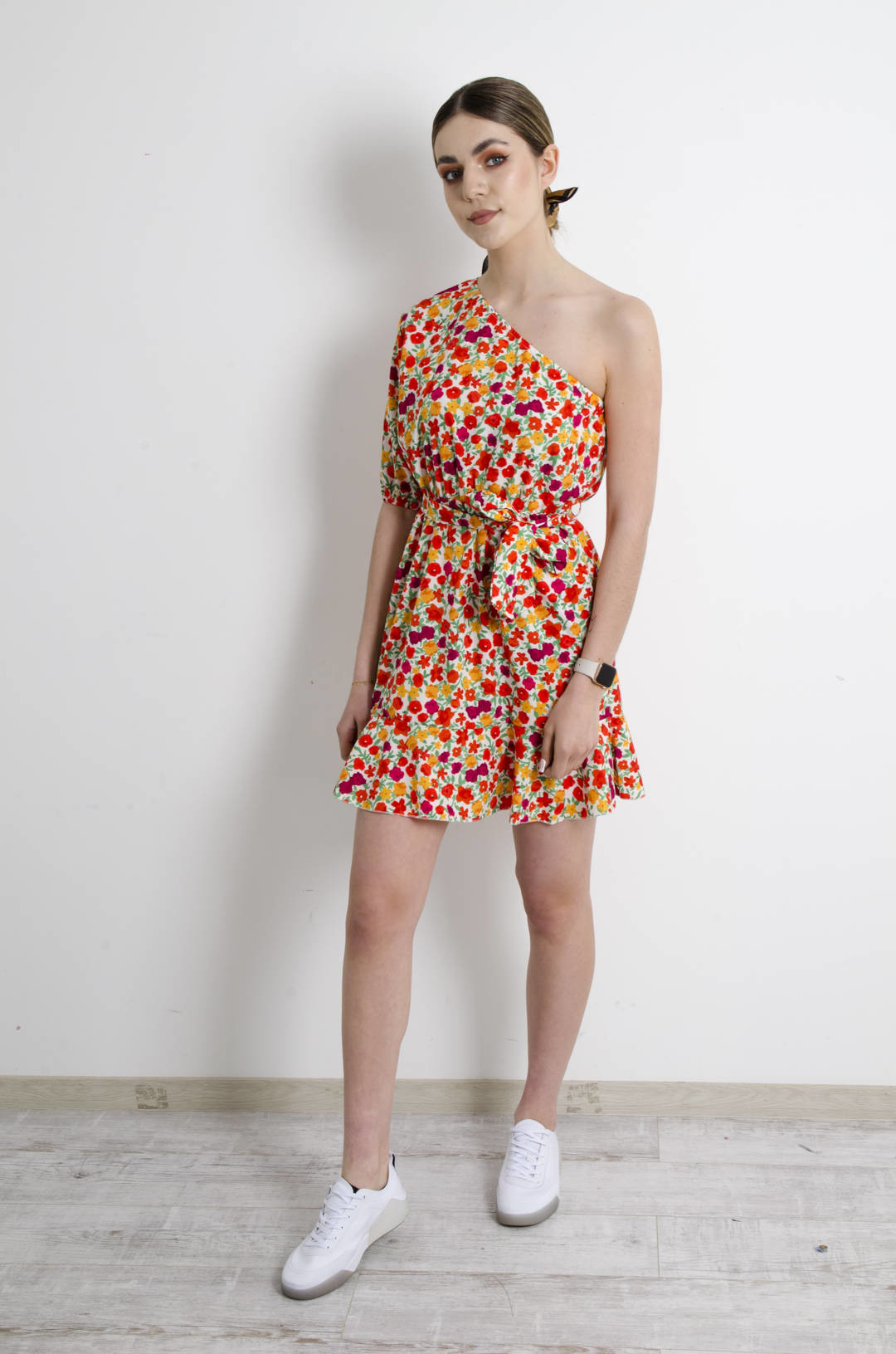 SUKIENKA W KWIATY NA JEDNO RAMIĘ -BIAŁA