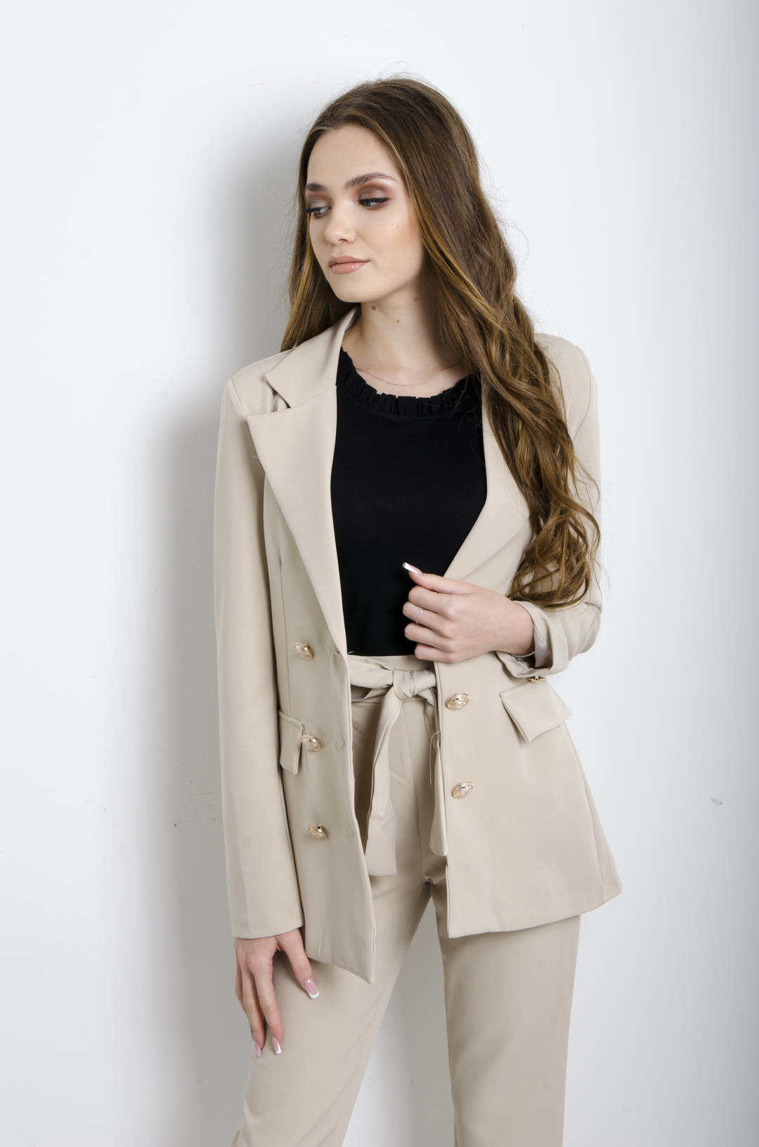 KOMPLET BEŻOWY MARYNARKA+ SPODNIE