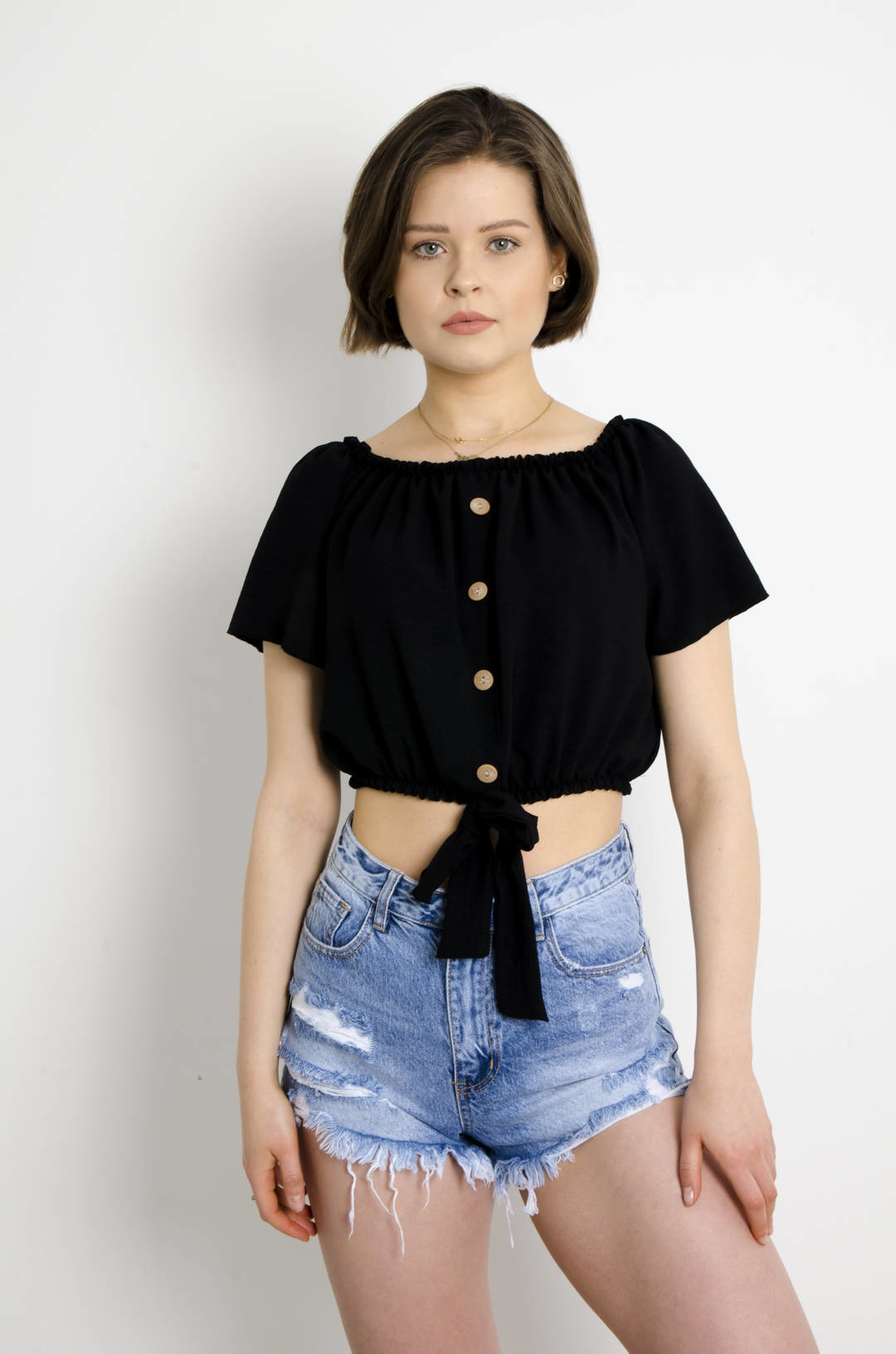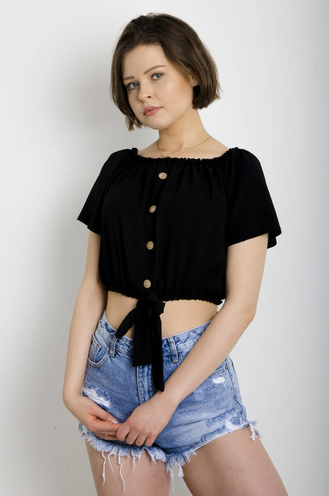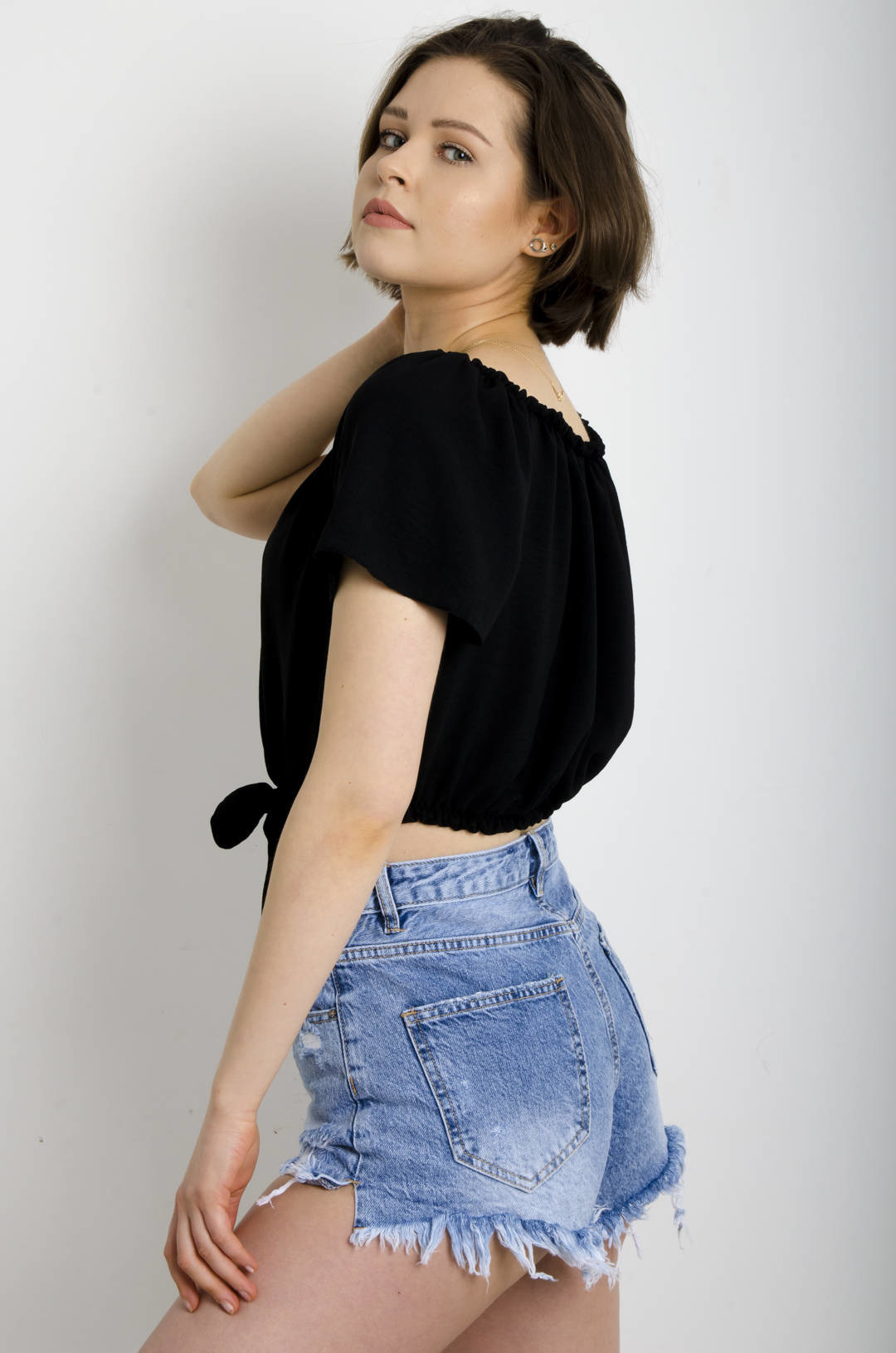BLUZKA HISZPANKA Z WIĄZANIEM - CZARNA