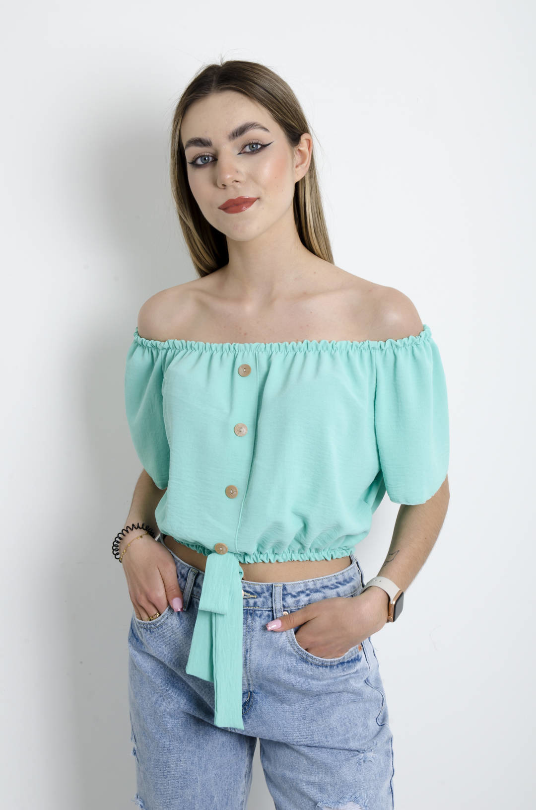 BLUZKA HISZPANKA Z WIĄZANIEM - ZIELONA