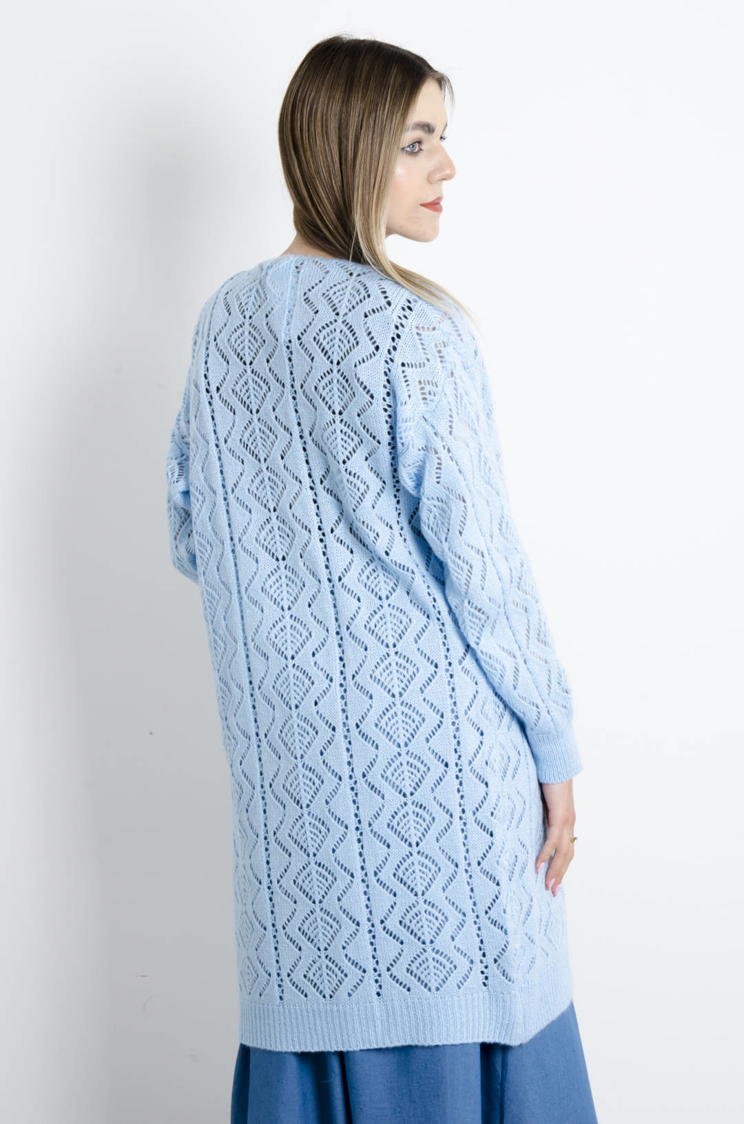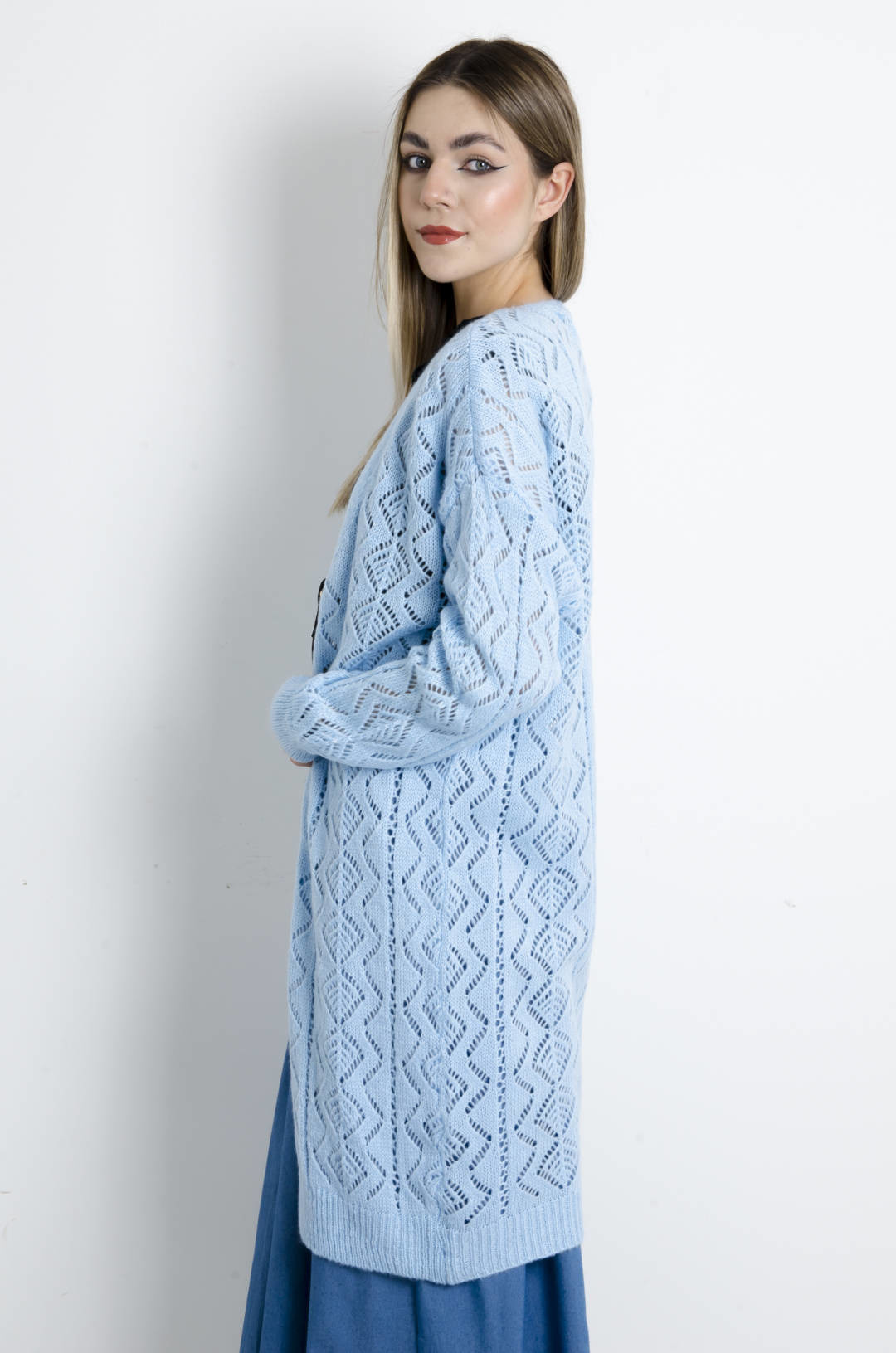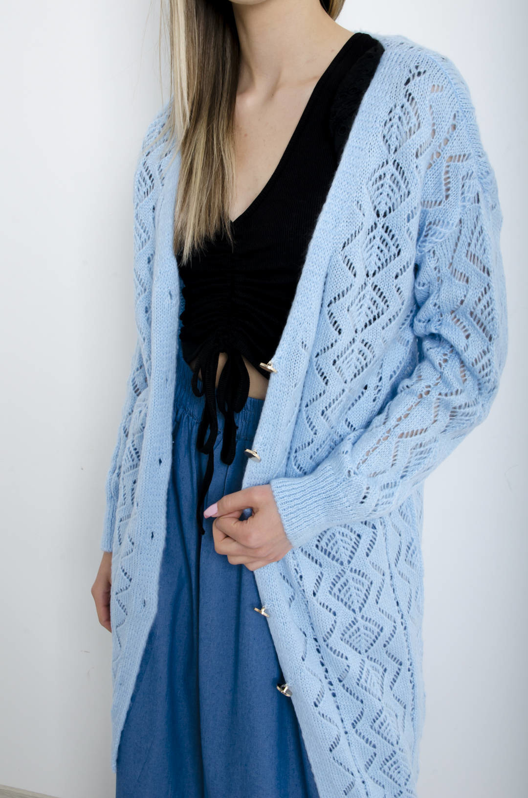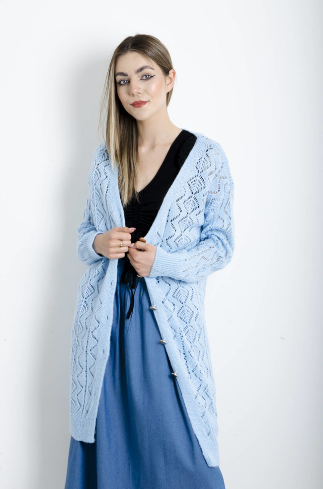 NARZUTA DŁUGA AŻUROWA ZAPINANA NA GUZIKI- NIEBIESKA