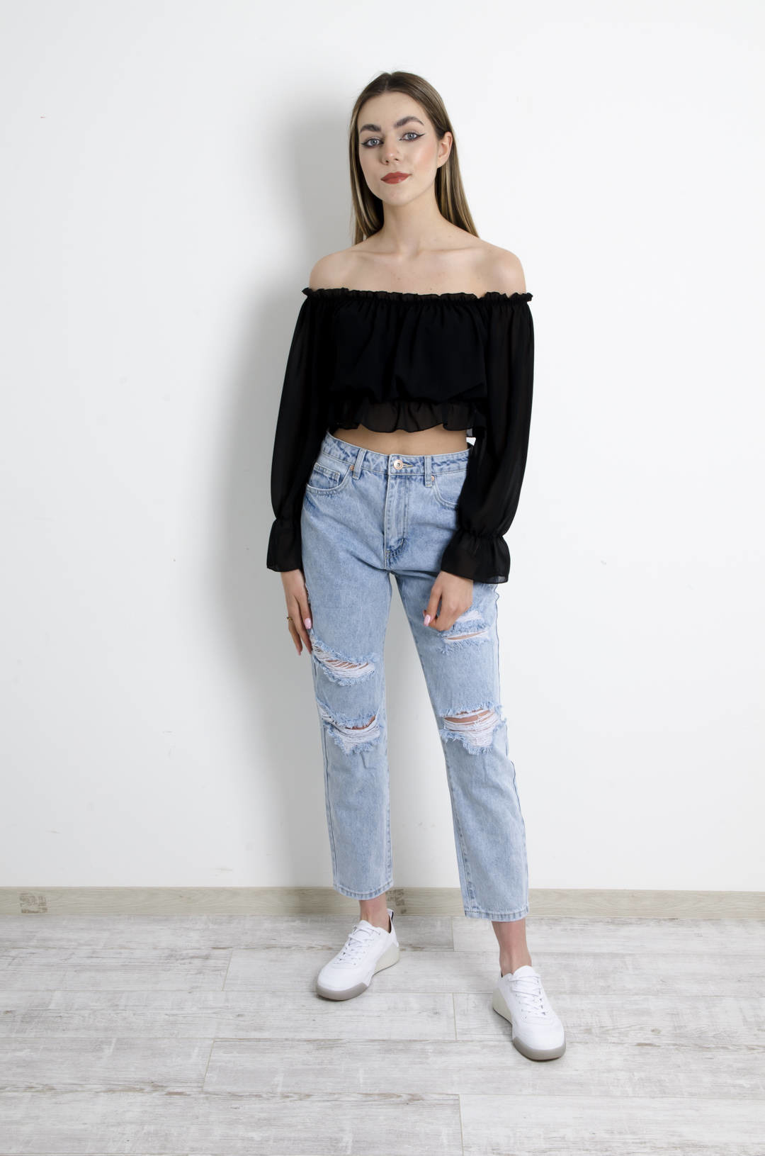 BLUZKA HISZPANKA NA DŁUGI RĘKAW - CZARNA