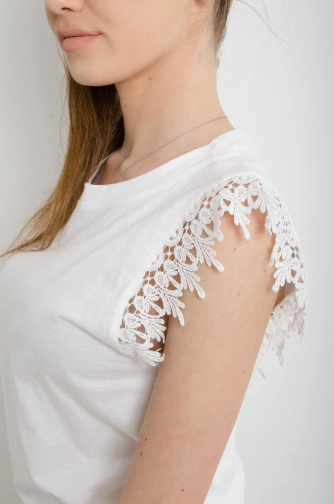 BLUZKA DZIANINOWA  AŻUROWE REKAWY- BIAŁA