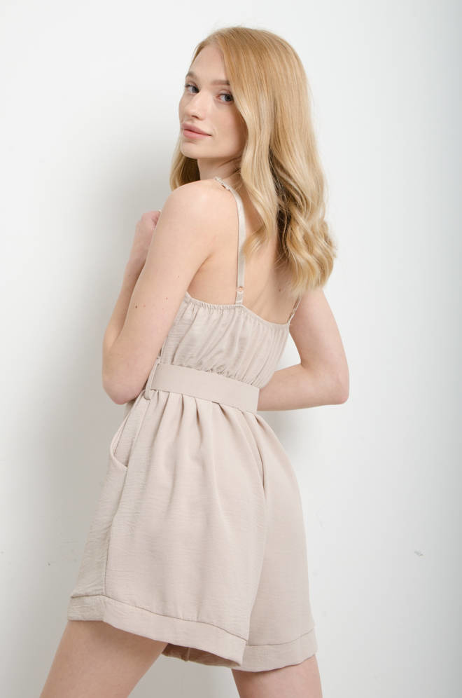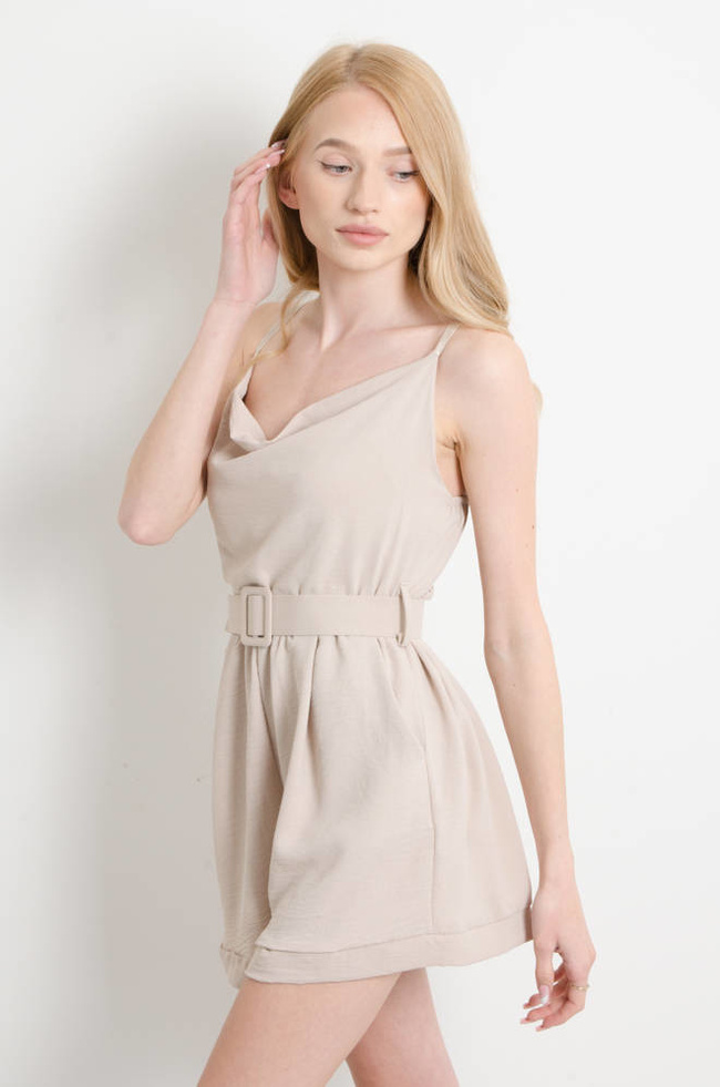 KOMBINEZON NA CIENKICH RAMIĄCZKACH Z PASKIEM- BEŻOWY