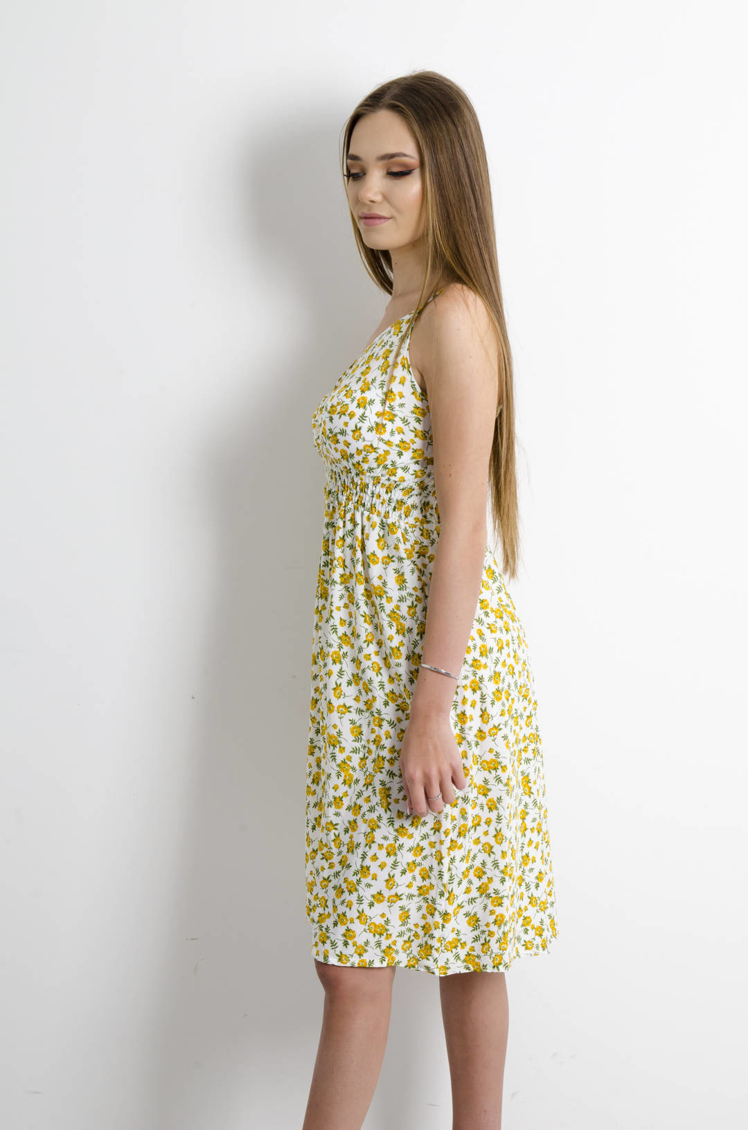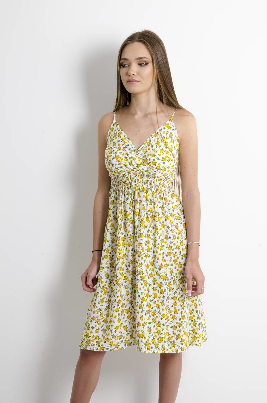 SUKIENKA W KWIATY MINI DEKOLT W SZPIC- ŻÓŁTA