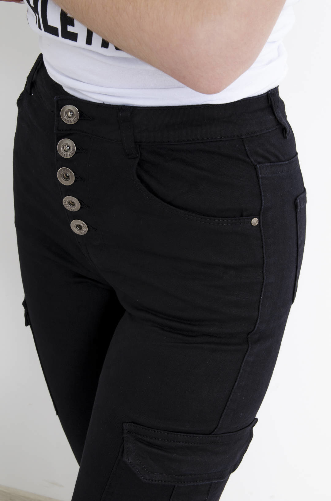 SPODNIE BOJÓWKI Z GUZIKAMI- CZARNE
