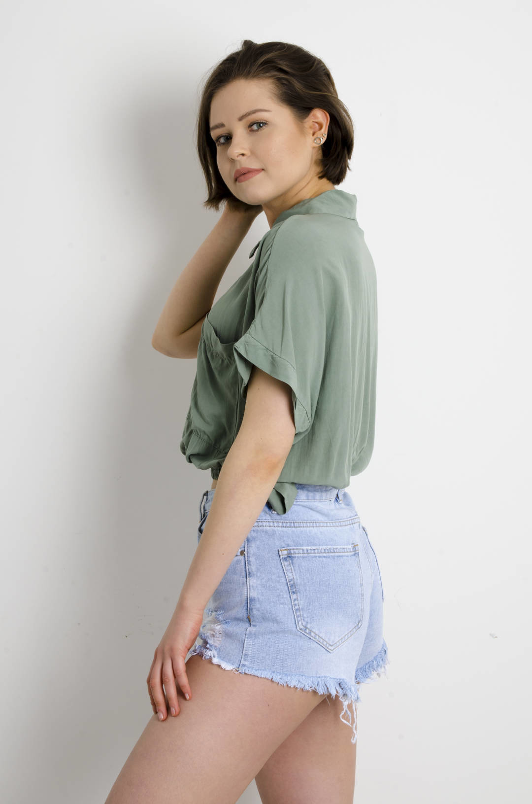 BLUZKA KOSZULOWA Z KIESZENIAMI
