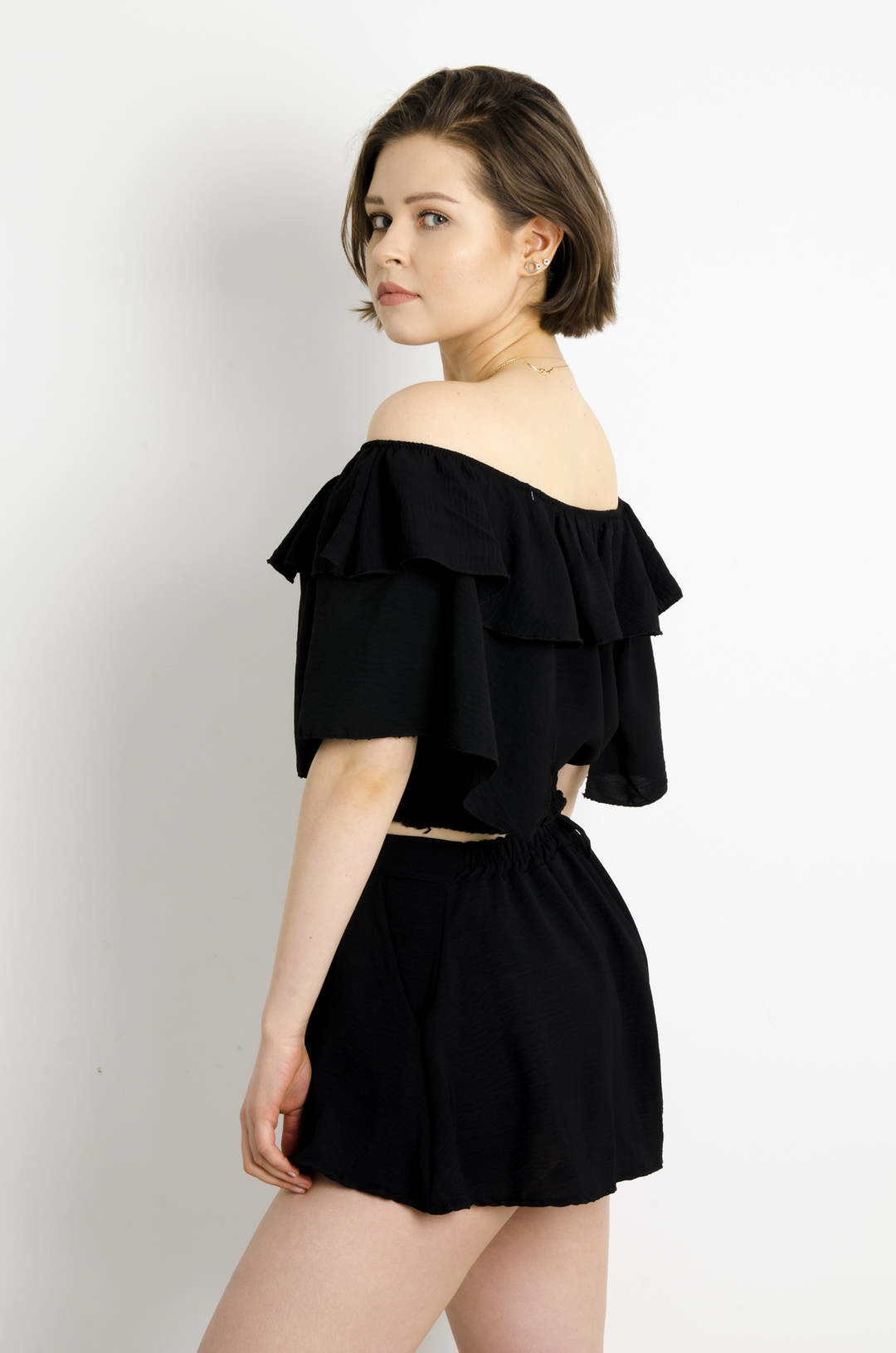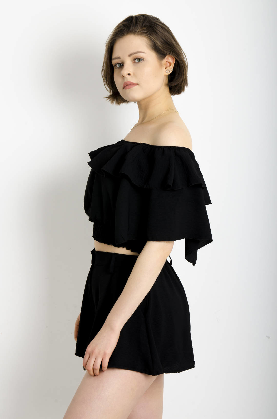 CZARNY KOMPLET HISZPANKA + SPODENKI Z WYSOKIM STANEM