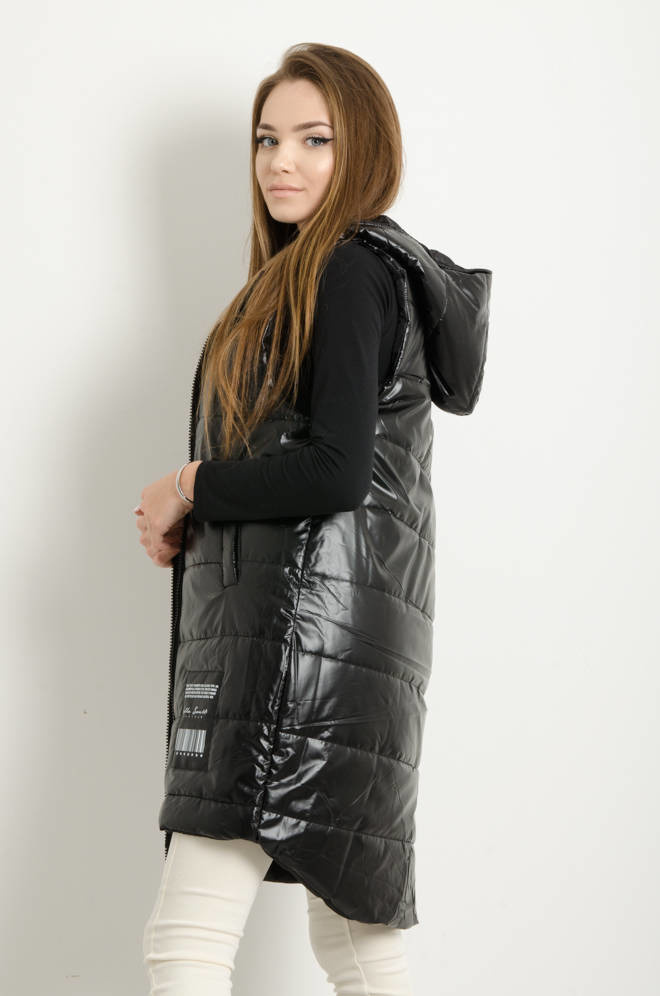 DŁUGA KAMIZELKA Z OZDOBNĄ NASZYWKĄ- CZARNA