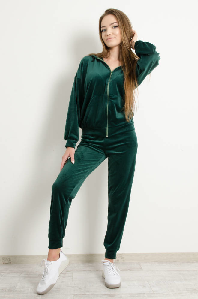 WELUROWY KOMPLET DRESOWY ROZPINANY Z KAPTUREM- ZIELONY