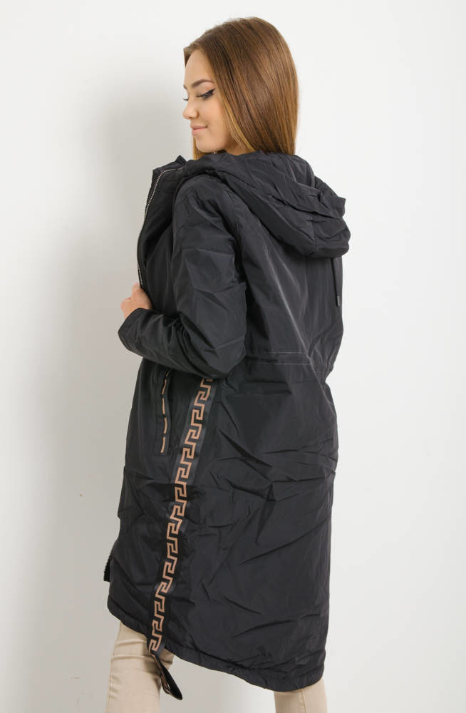 CZARNA PARKA Z OZDOBNYM LAMPASEM