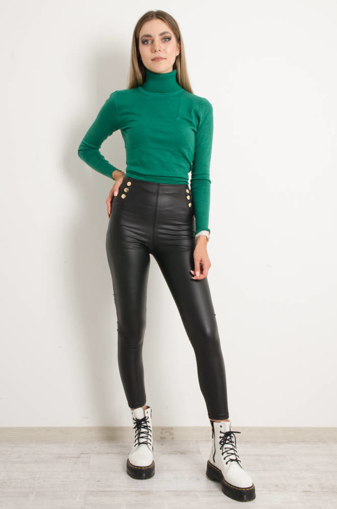 LEGGINSY IMITACJA SKÓRY Z GUZIKAMI