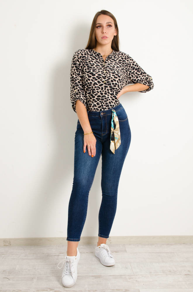 SPODNIE JEANSOWE PUSH UP Z OZDOBNĄ WSTĄŻKĄ